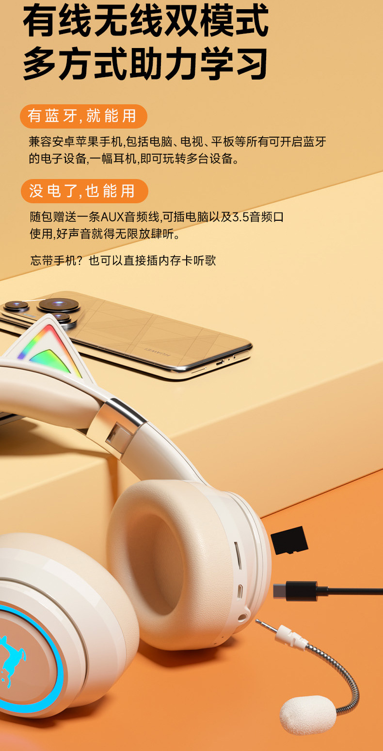 背書神器耳返兒童誦讀藍牙耳機頭戴式學生學習專用可愛貓耳朵聖誕