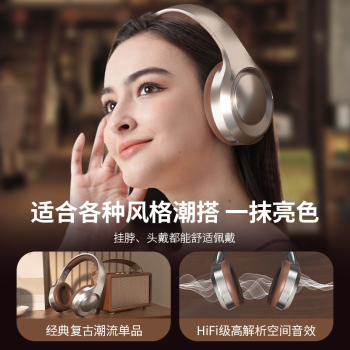 復古頭戴式耳機無線藍牙遊戯低延遲降噪超長續航