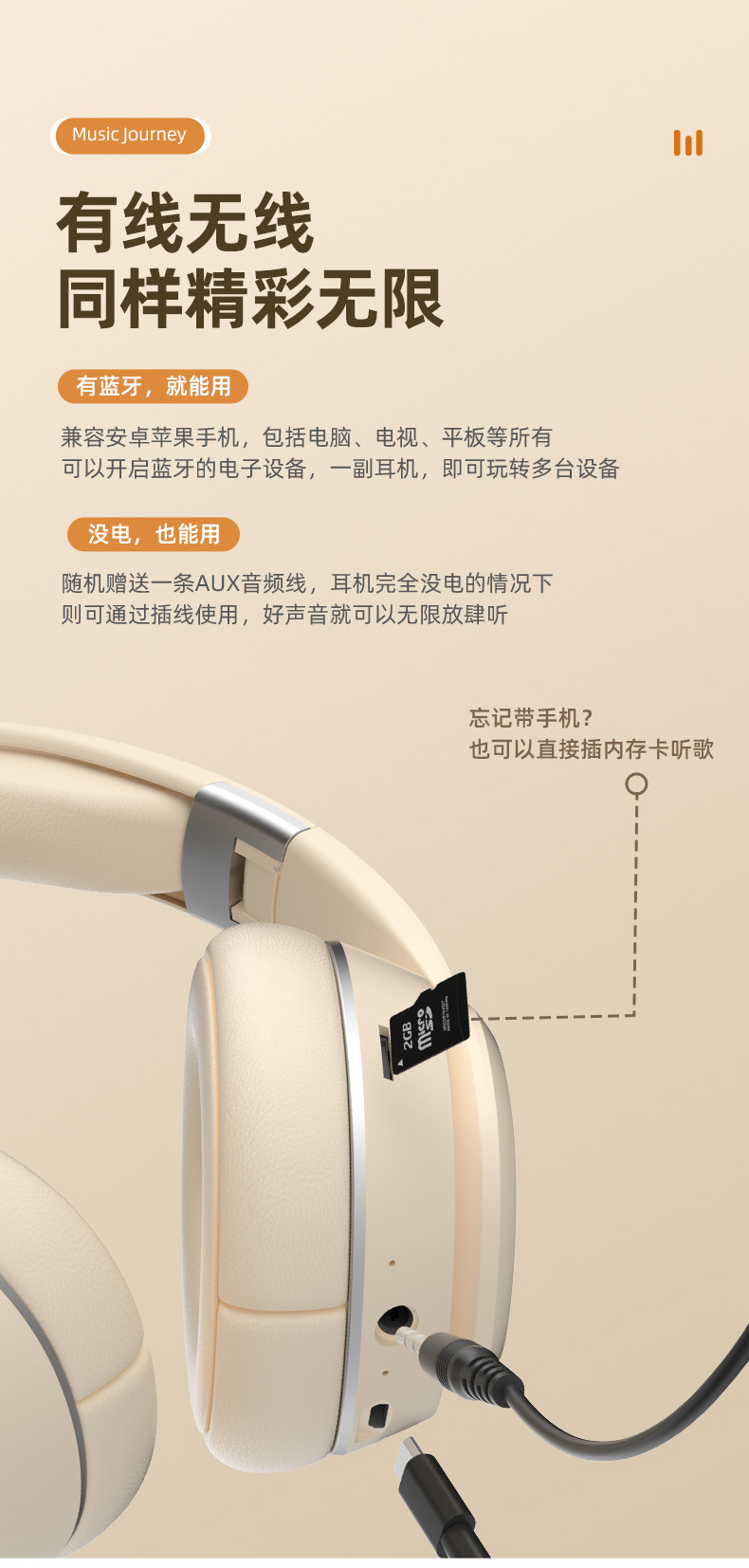 新款全包耳頭戴式藍牙耳機高音質可插卡冬天必備高顔值長續航
