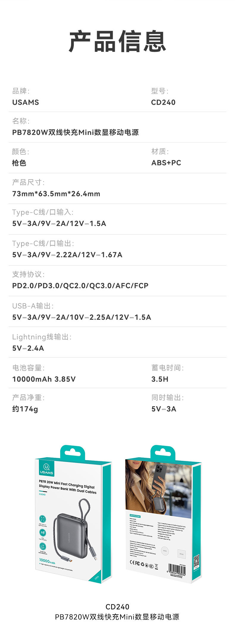 電源容量 | 10000毫安 |