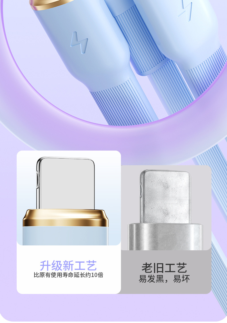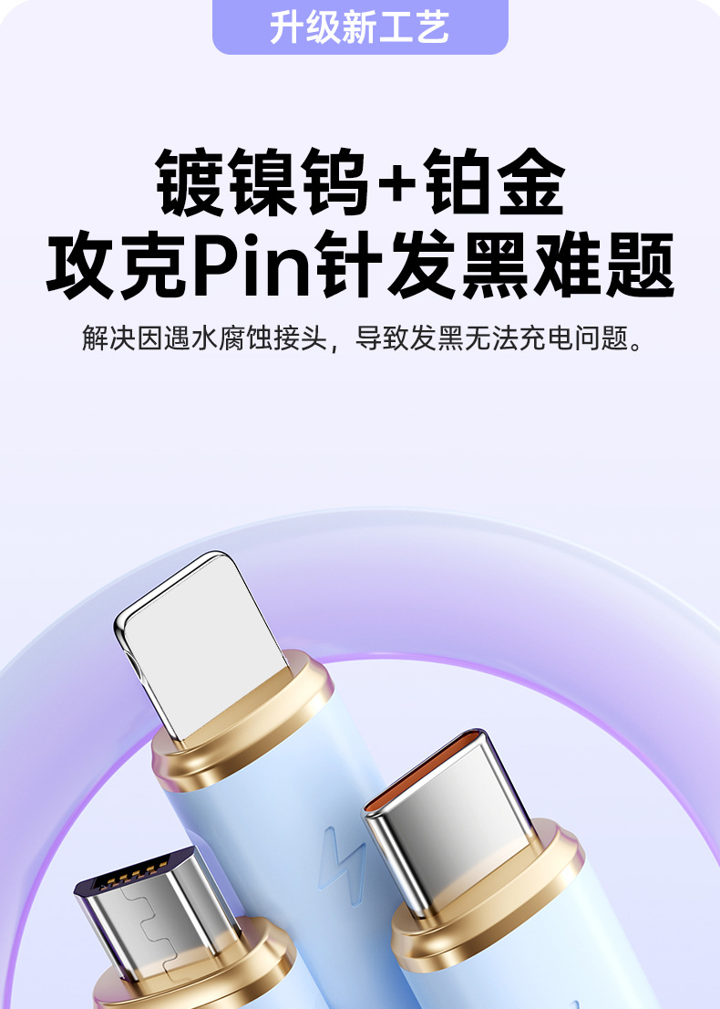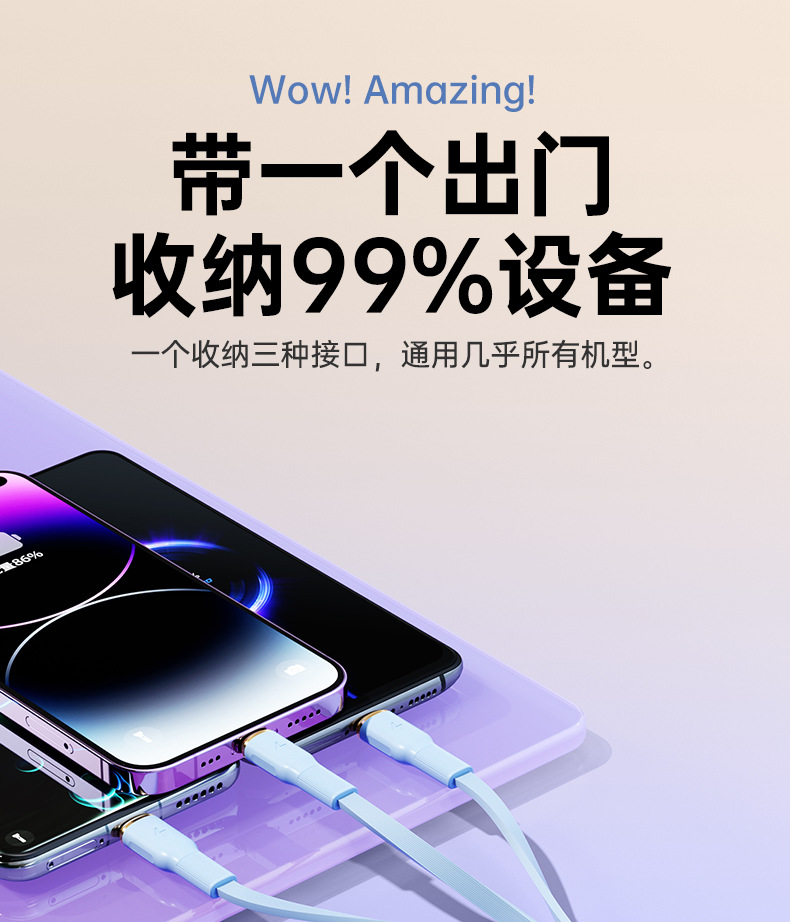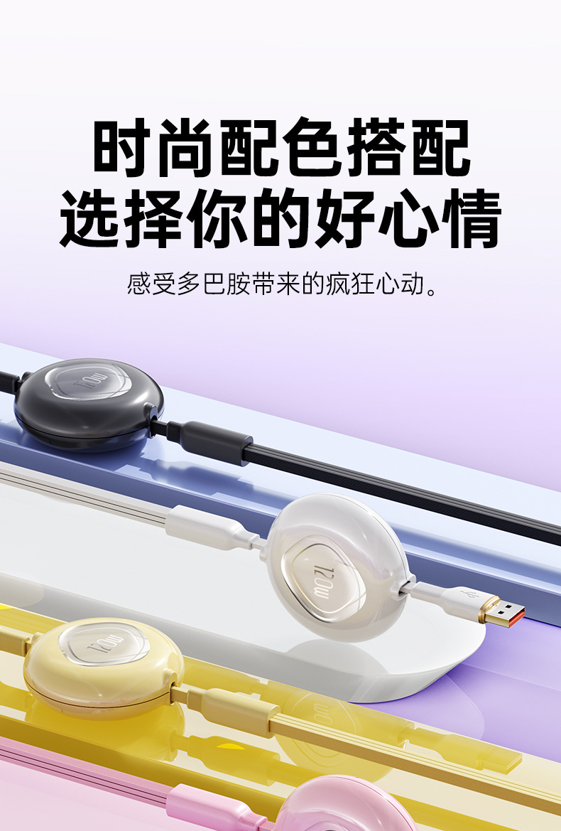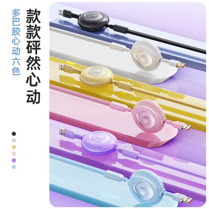 120W超級閃充伸縮充電線三合一多功能6A大容量數據線適用蘋果華爲