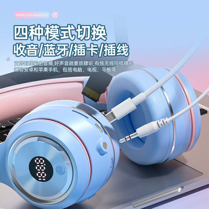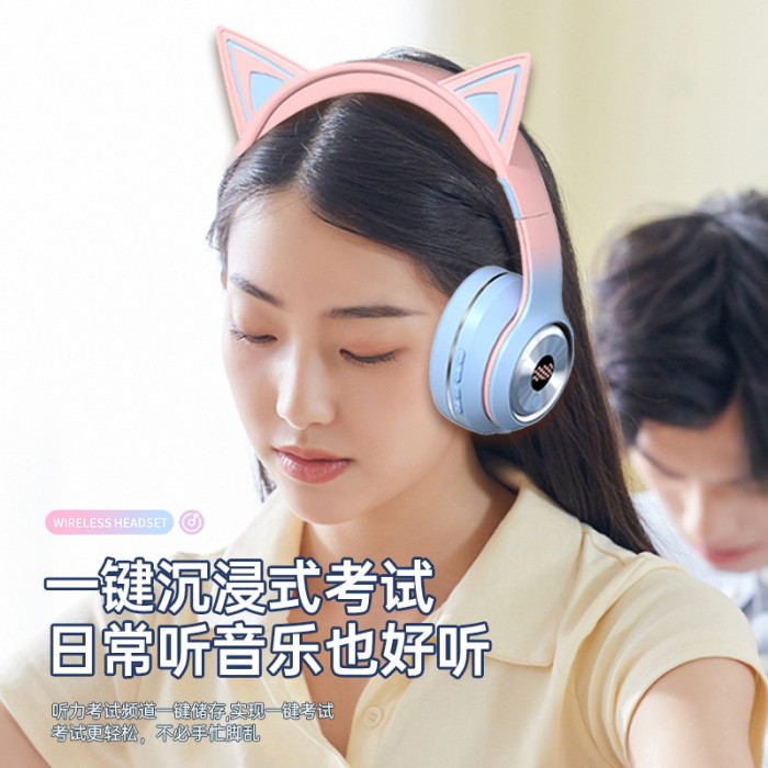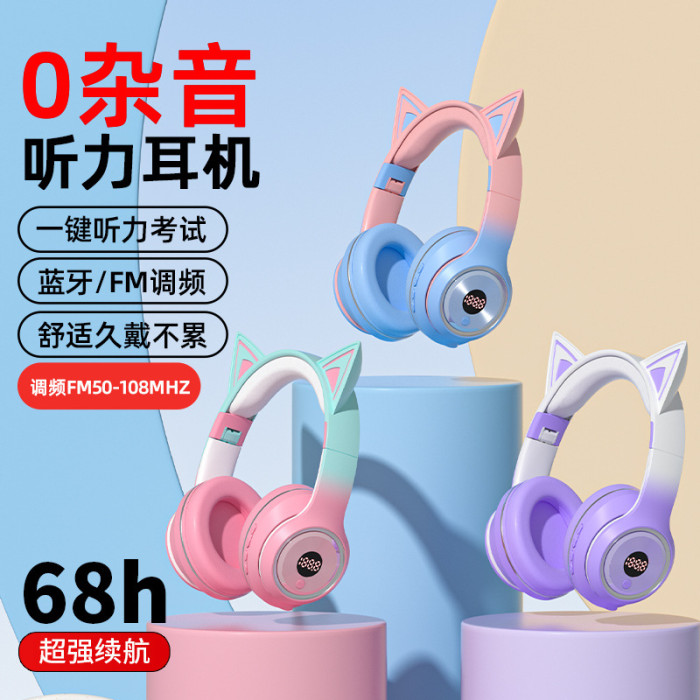 英語聽力四六級考試專用頭戴式藍牙耳機貓耳調頻爆款