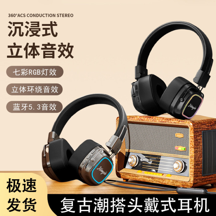 發光無線藍牙耳機頭戴式可插卡爆款電競長續航降噪麥