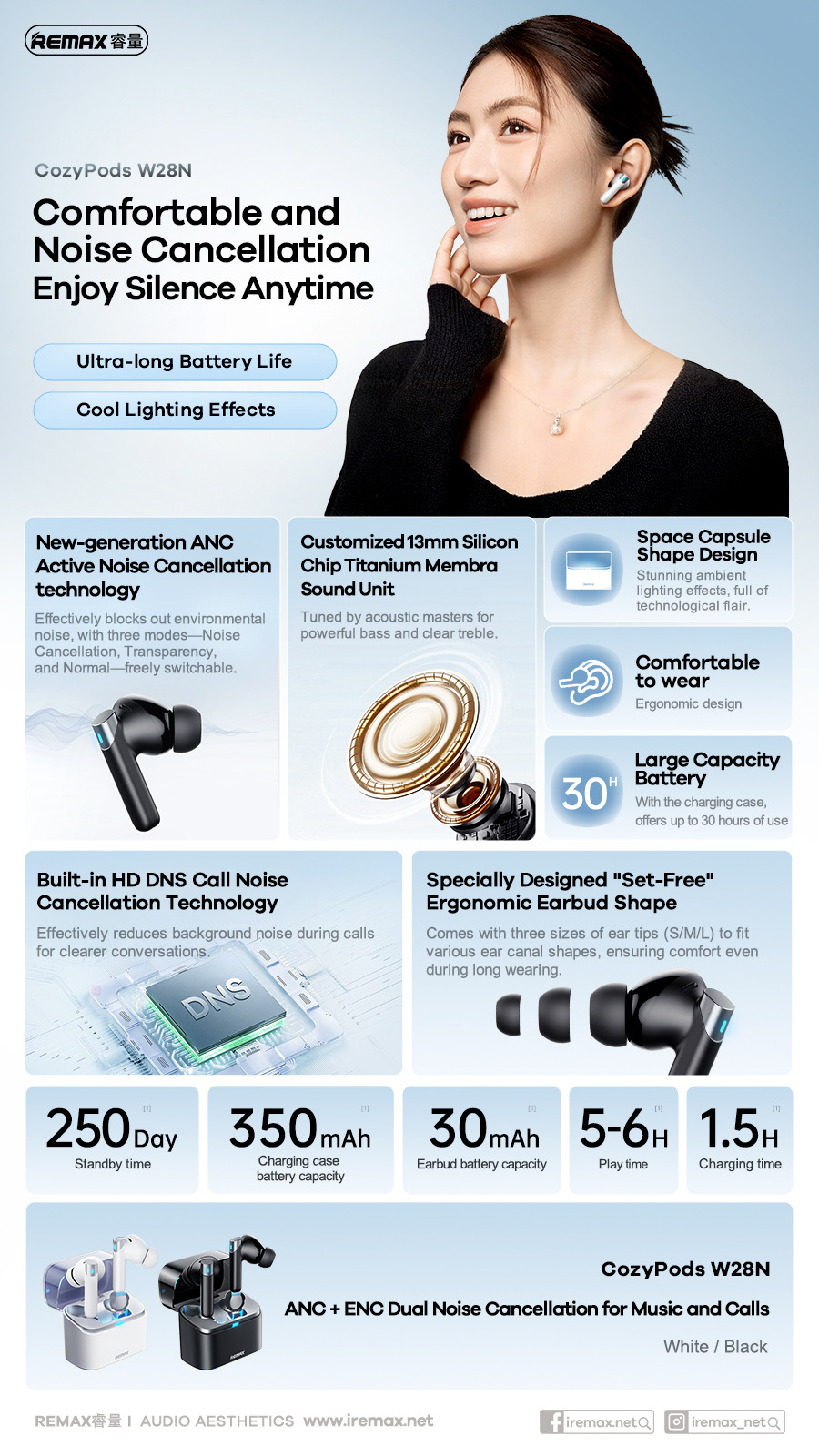 remax 入耳ANC主動降噪藍牙耳機 長續航音樂通話降噪藍牙無線耳機
