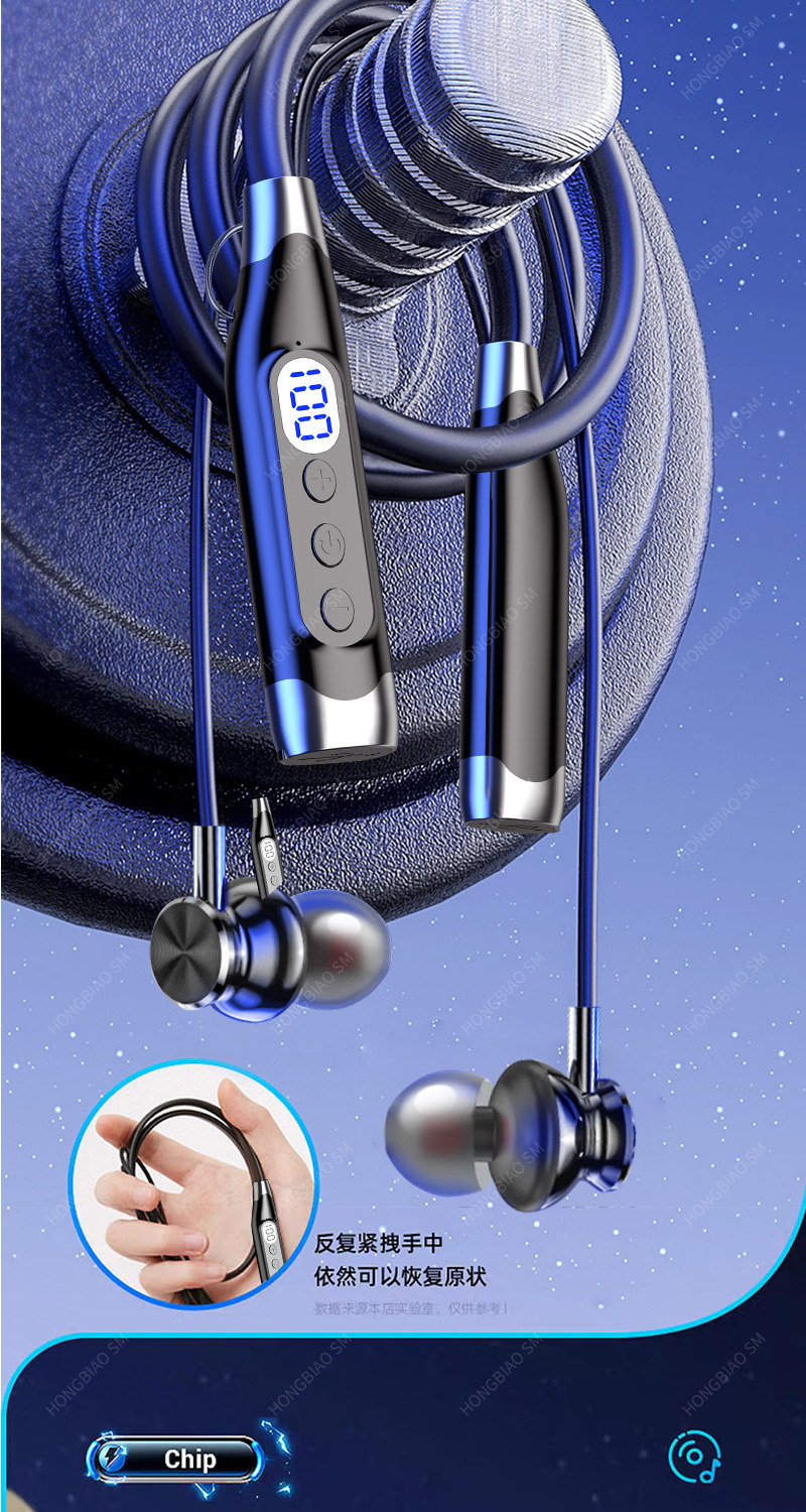 藍牙耳機適用於蘋果華爲小米掛脖數顯運動降噪耳機有線超長待機