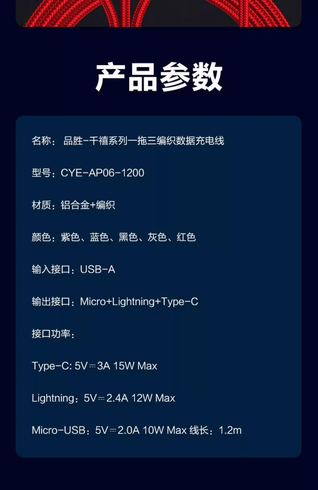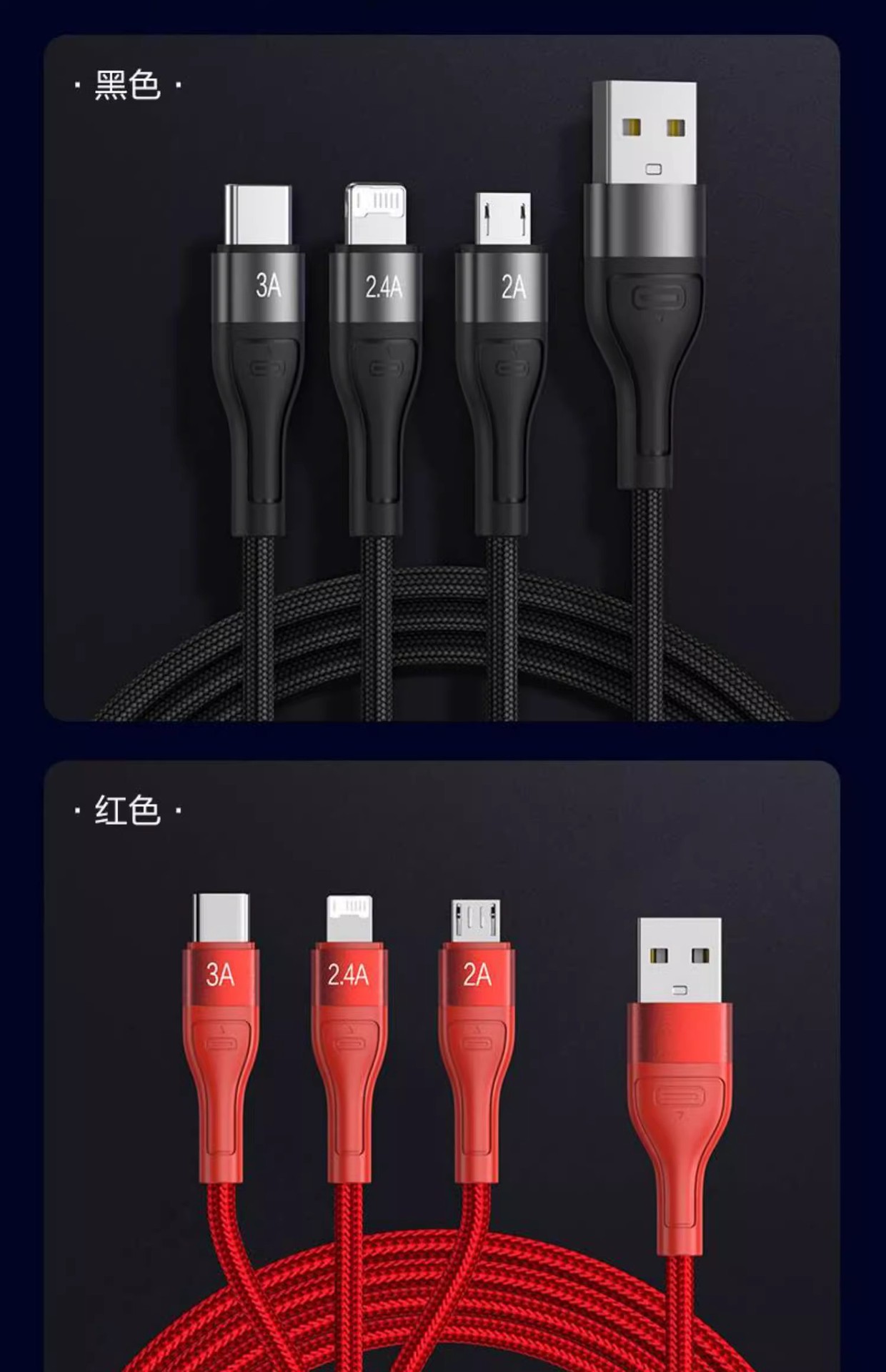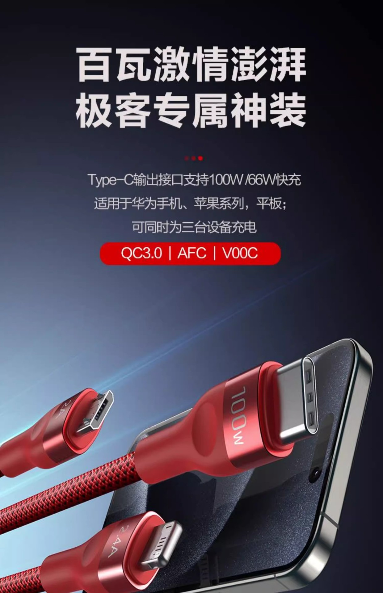 升級款-千禧紅1.2米【100W快充】三合一(支持蘋果15-16)