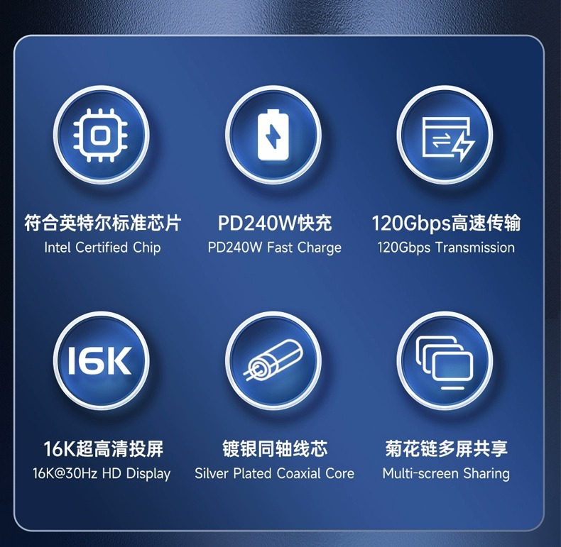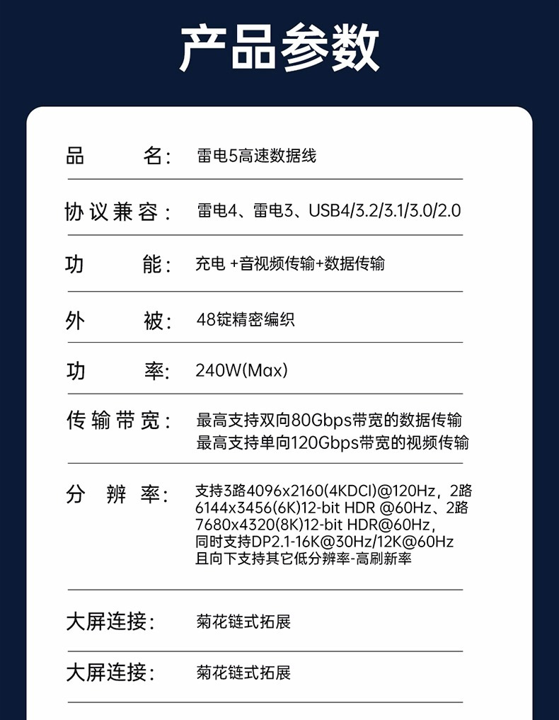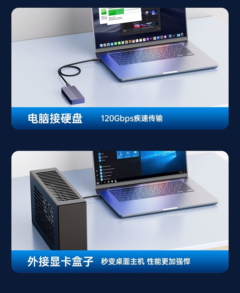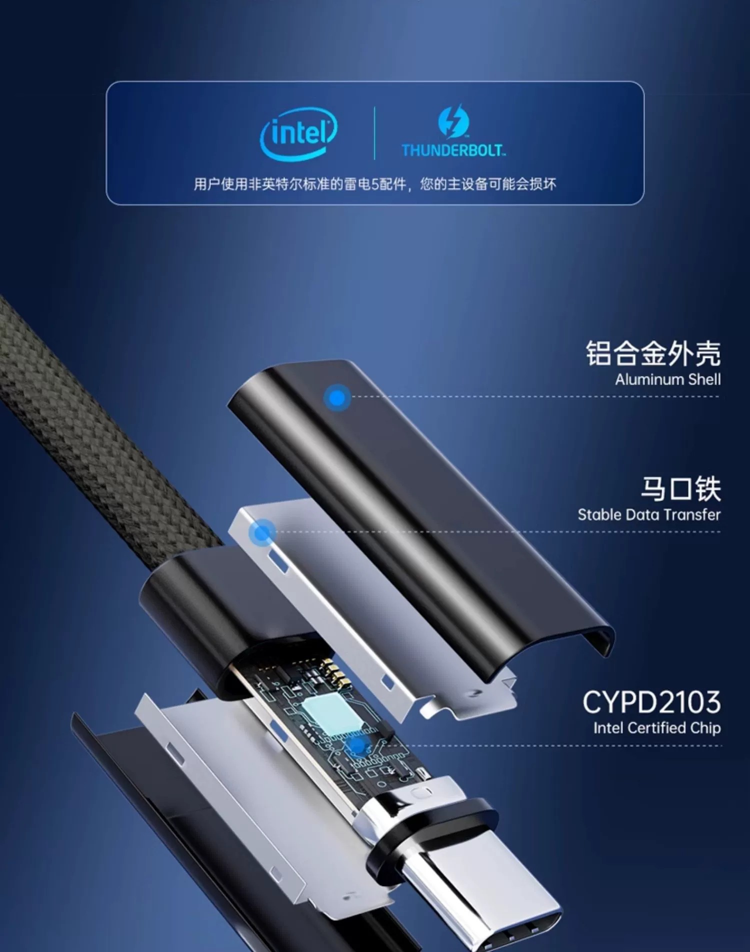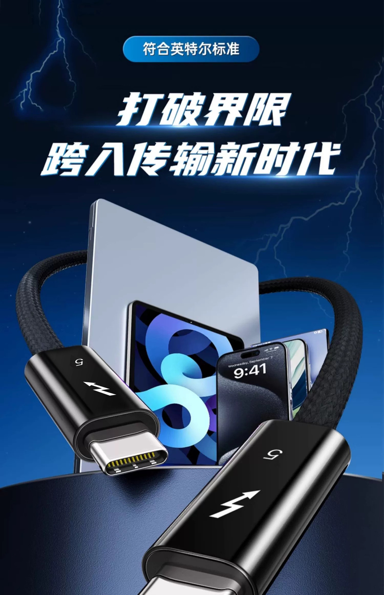 雷電5數據線120Gbps高速數據傳輸240W快充全功能PD雙Type-C充電線