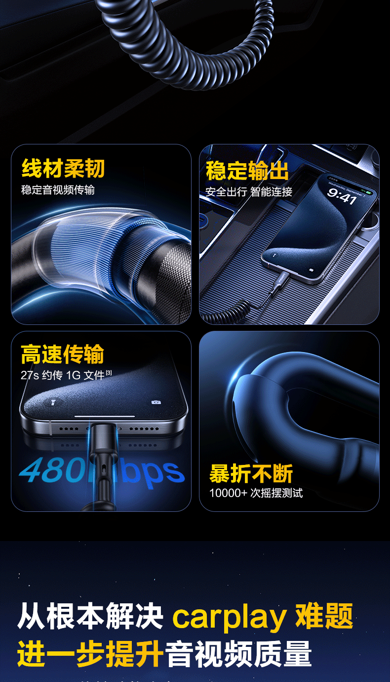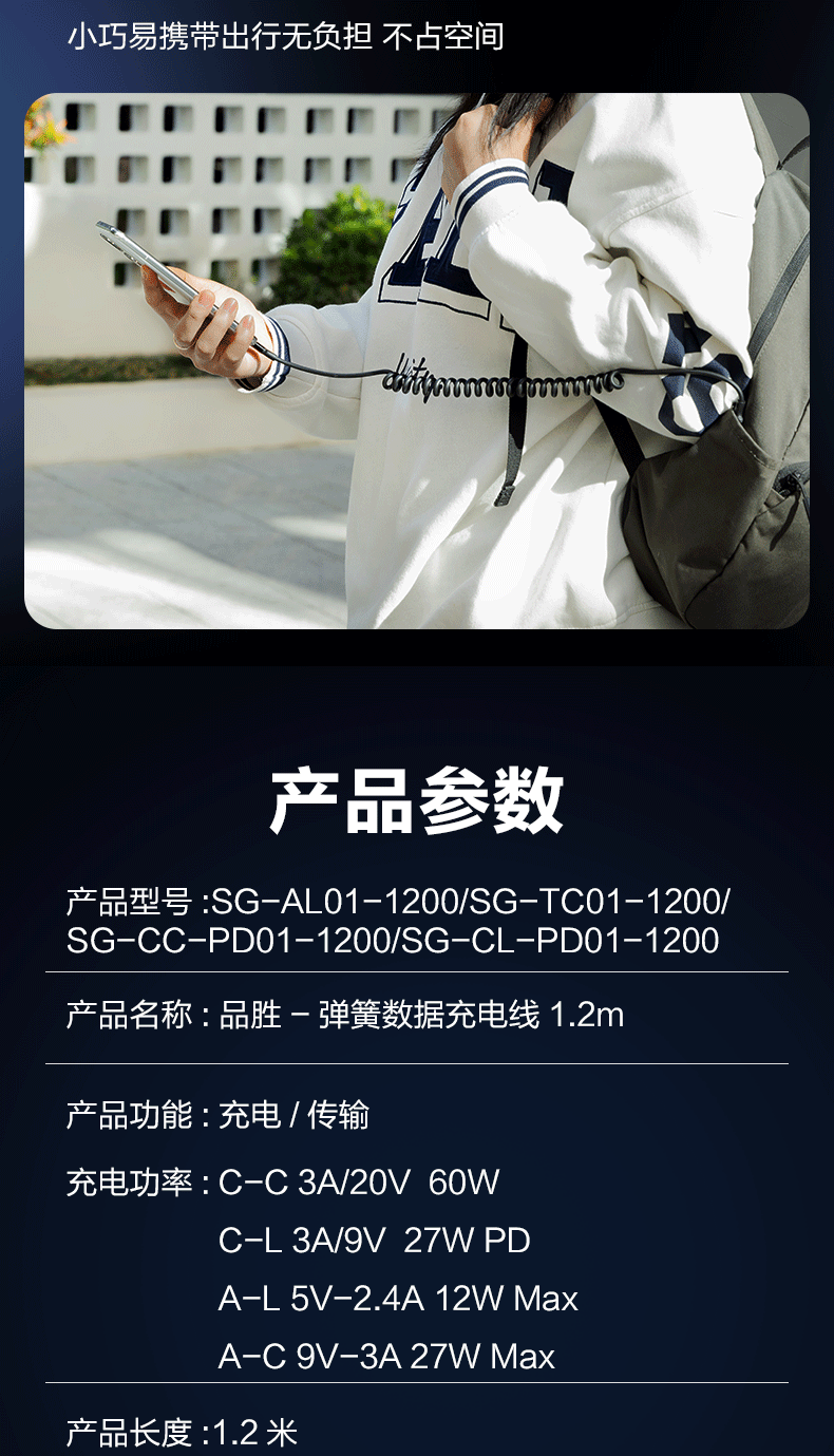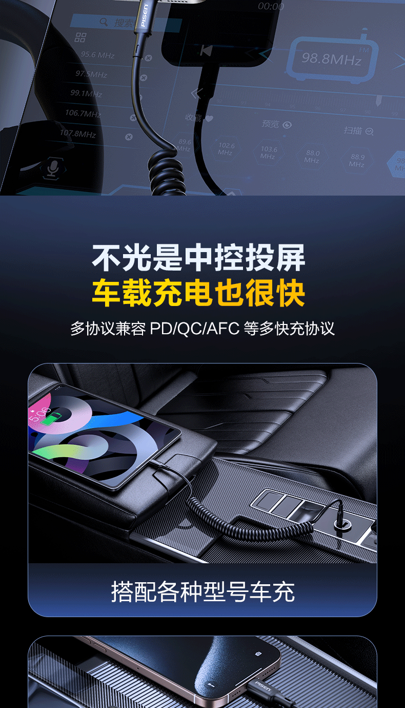 品勝車用彈簧數據快充線自由伸縮充電適用於蘋果全系列華爲小米等