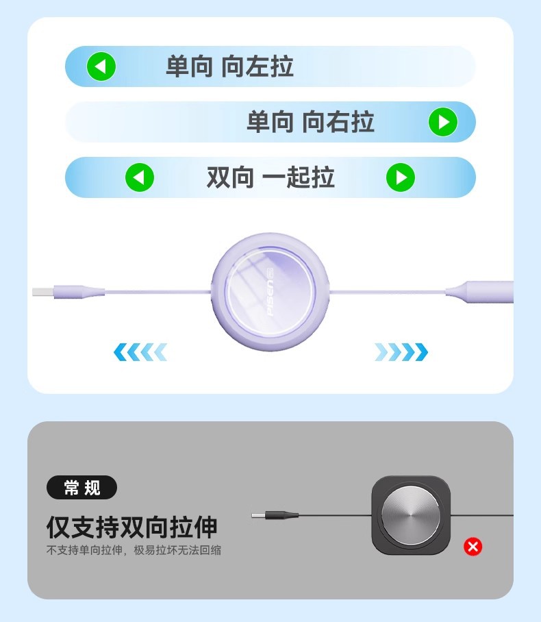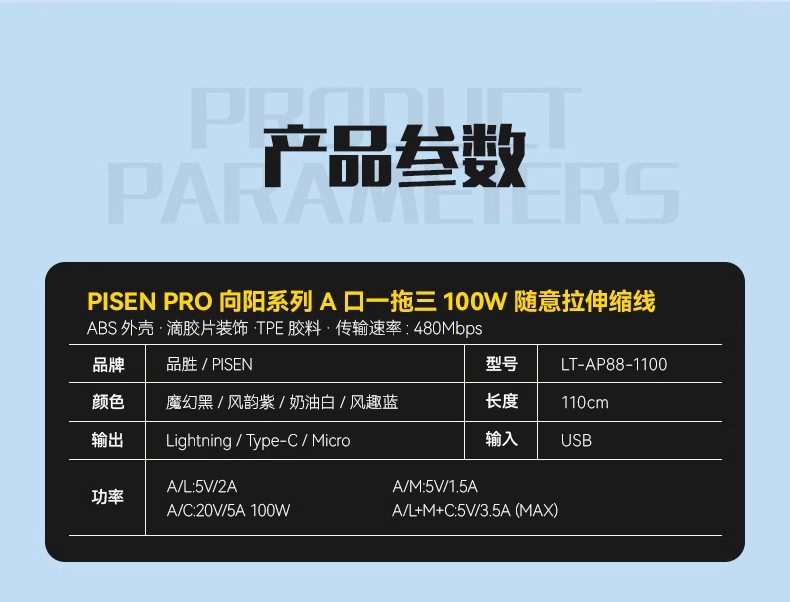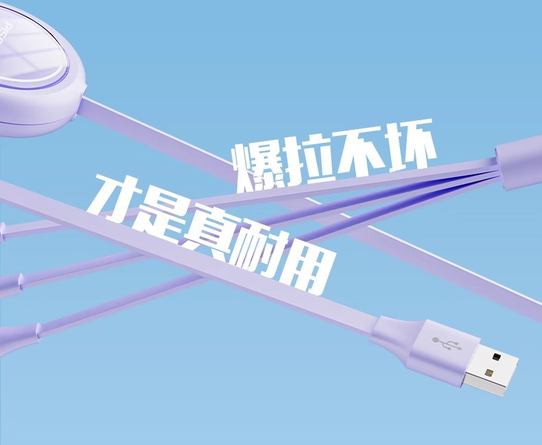 品勝三合一數據線伸縮充電線適用蘋果16pro華爲小米100W數據線C口