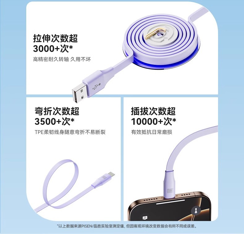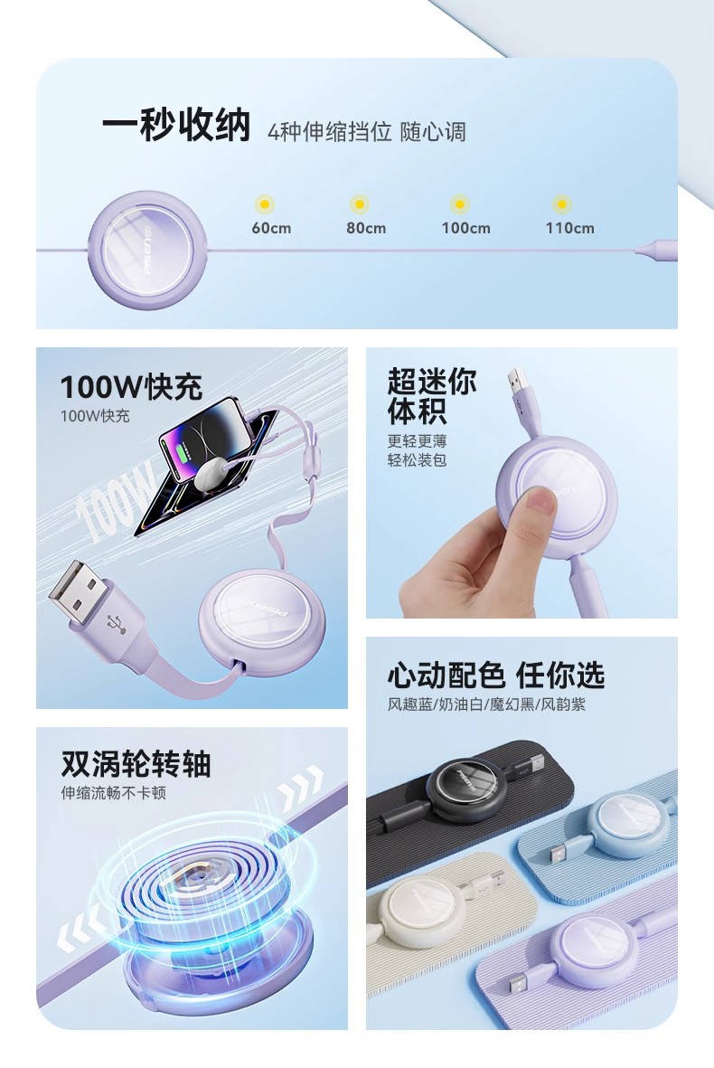 風韻紫1.1米【適用蘋果+安卓+type-c】100w超級快充*typec輸入口