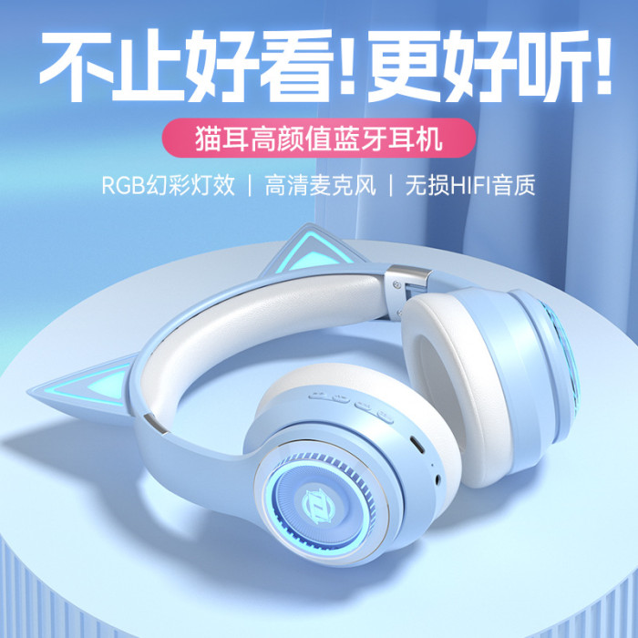 貓耳朵頭戴式耳機無線藍牙帶耳麥電競網紅同款爆款