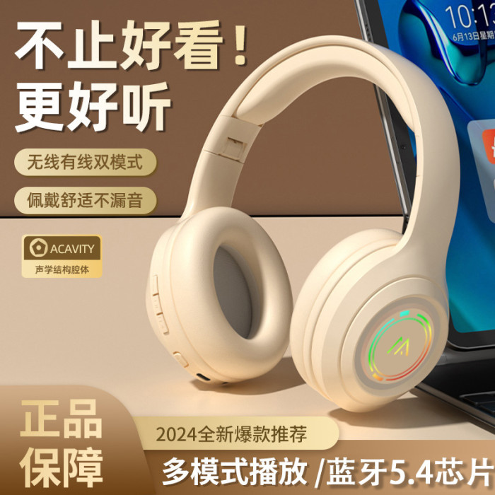 2025新款發光頭戴式藍牙耳機無線電競遊戯高音質運動高顔值降噪