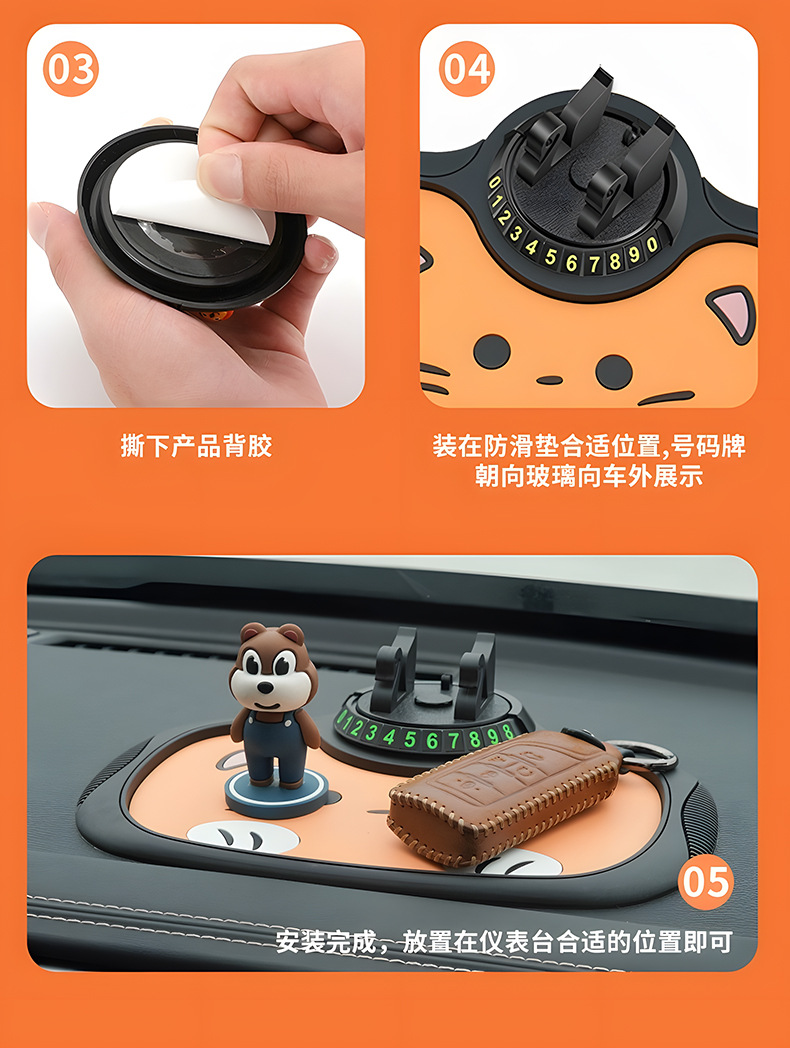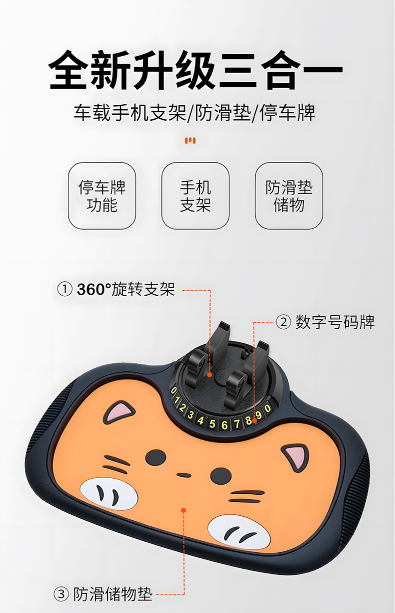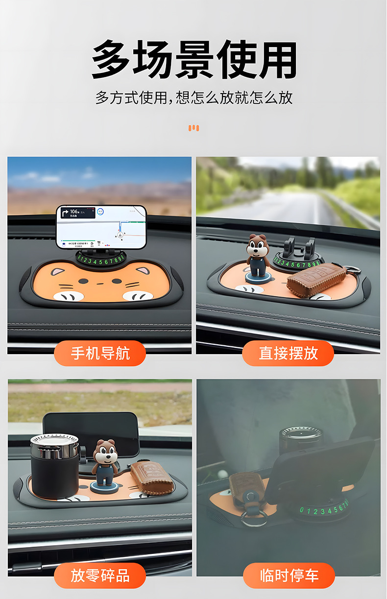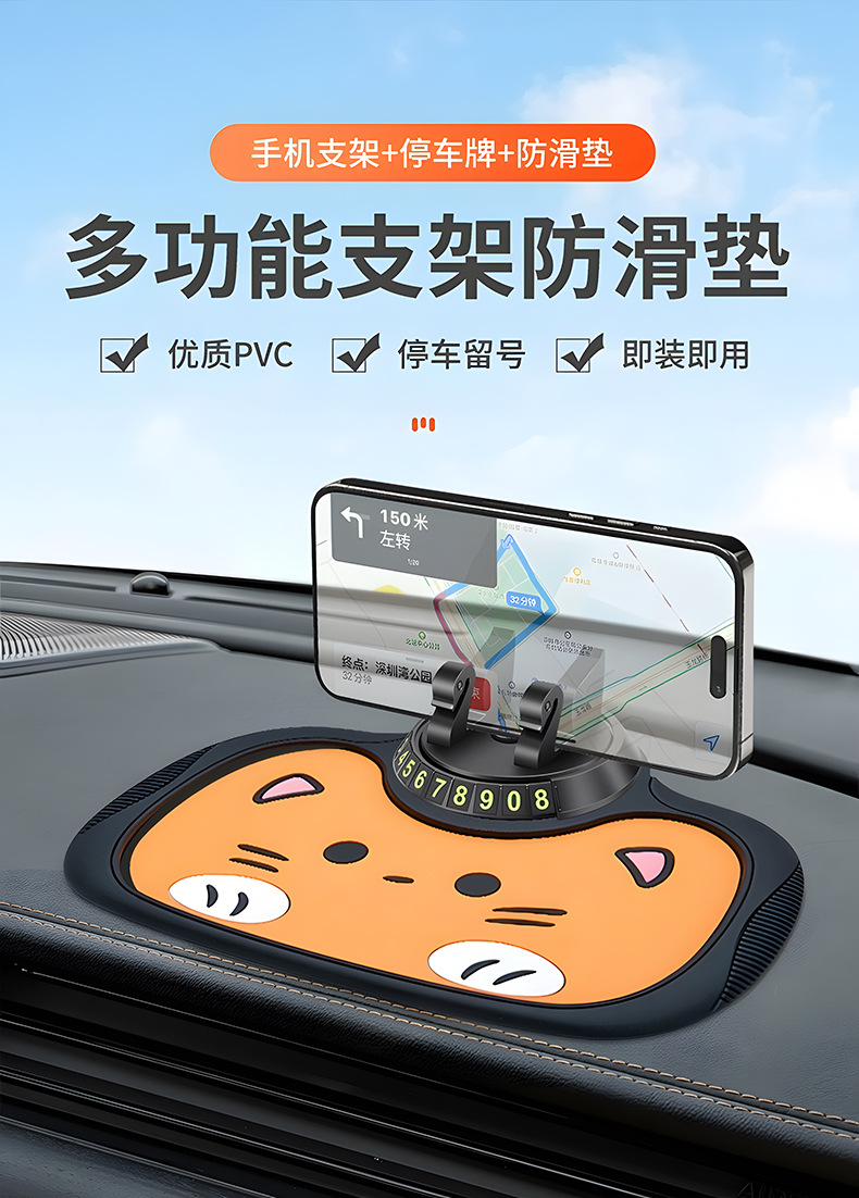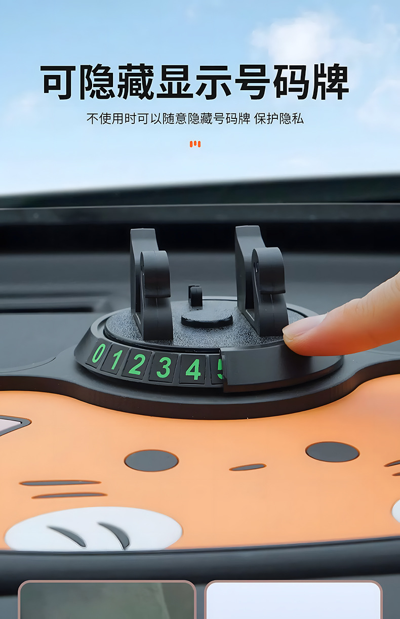 車用手機支架汽車內飾用品大全創意臨時停車號碼牌卡通防滑墊通用