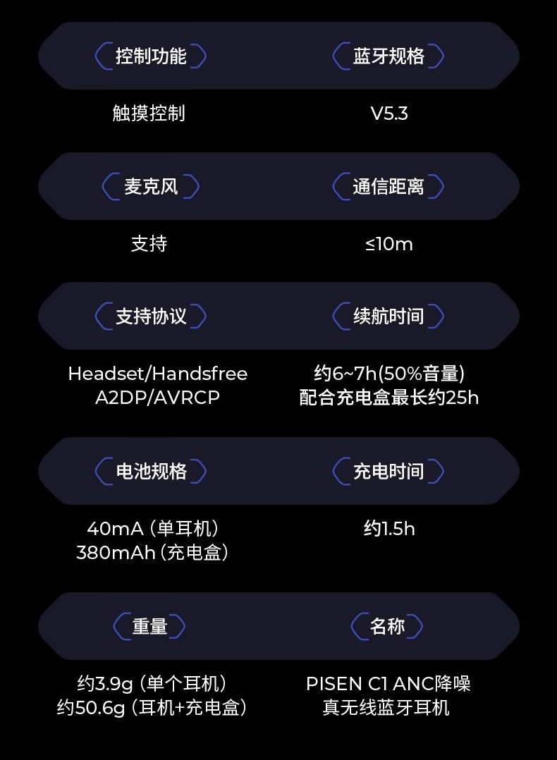 品勝C1入耳式ANC主動降噪真無線藍牙耳機藍牙5.3超長續航耳機禮品