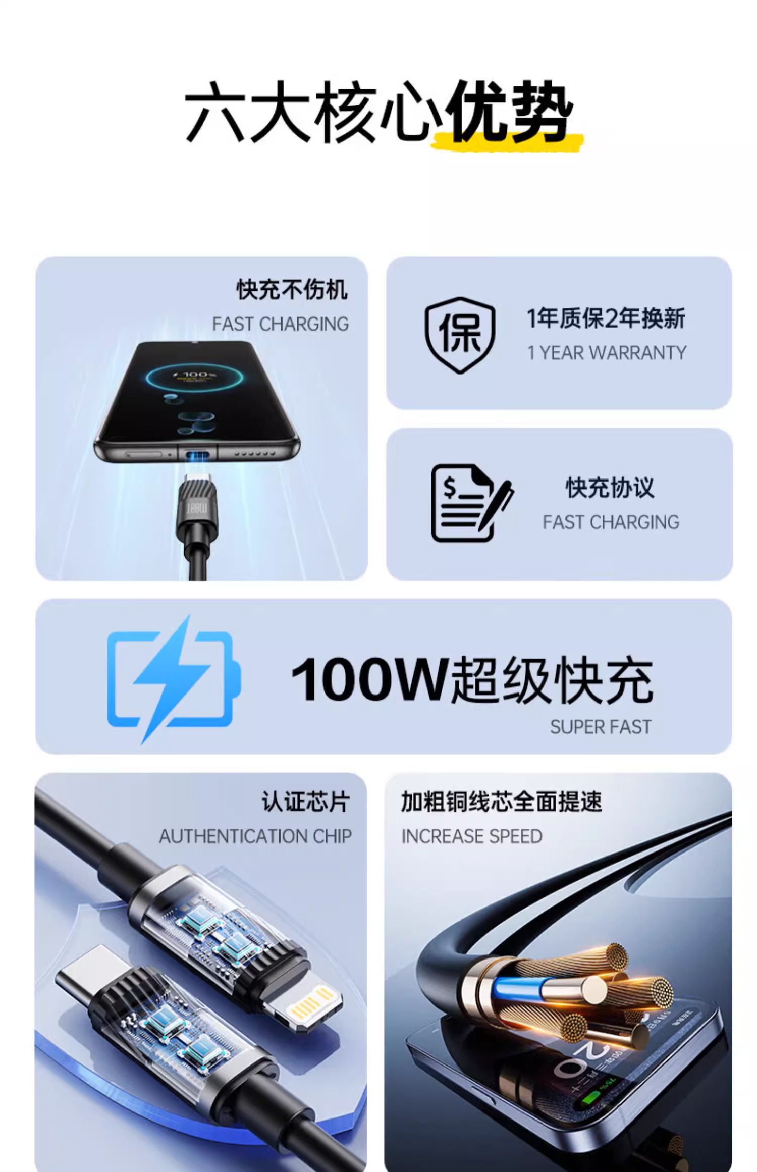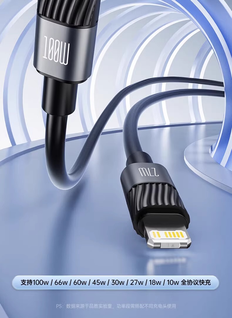 1.2m藍色【Typec+ip接口】100W快充丨支持蘋果8-16/安卓/筆記本/平板