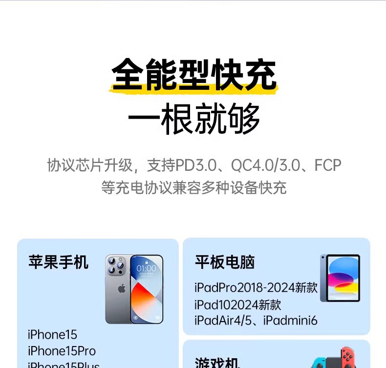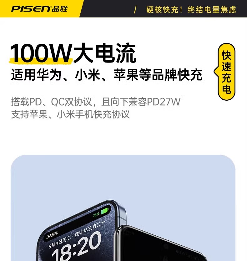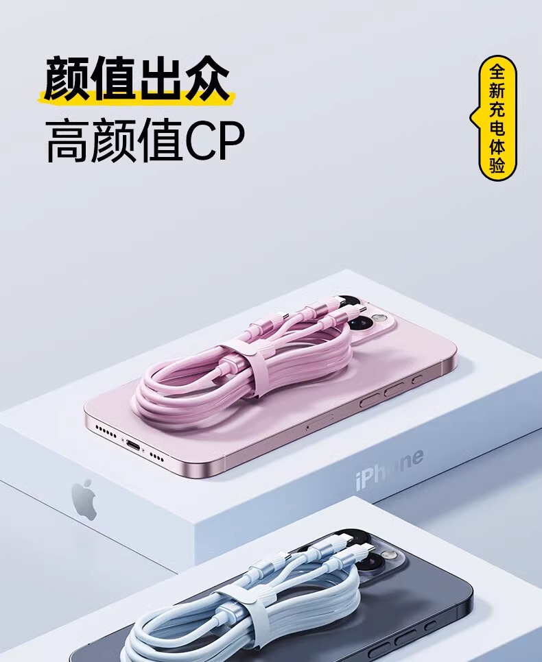品勝適用蘋果16/15數據線一拖二100W快充二合一iPhone14充電線PD