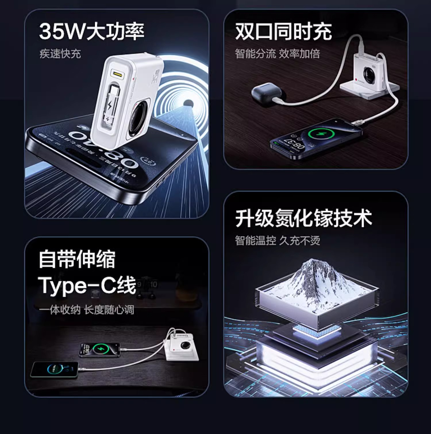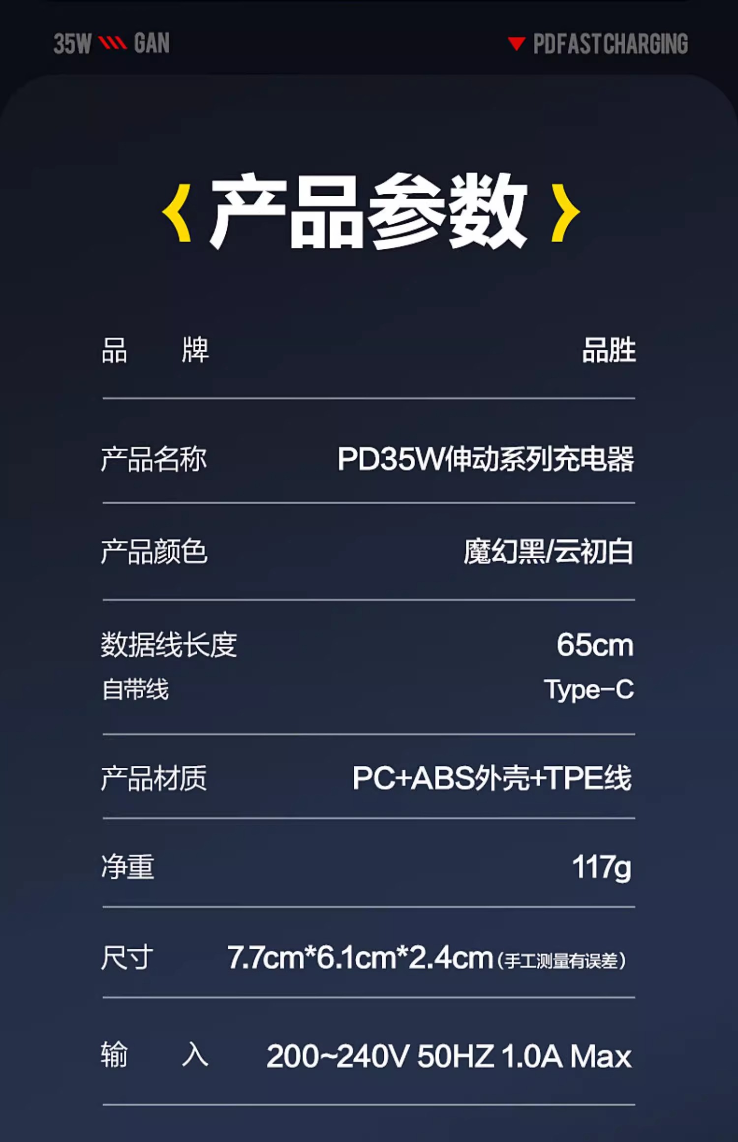 品勝65W氮化鎵伸縮線充電器適用蘋果16充電頭自帶線PD35W快充iPho