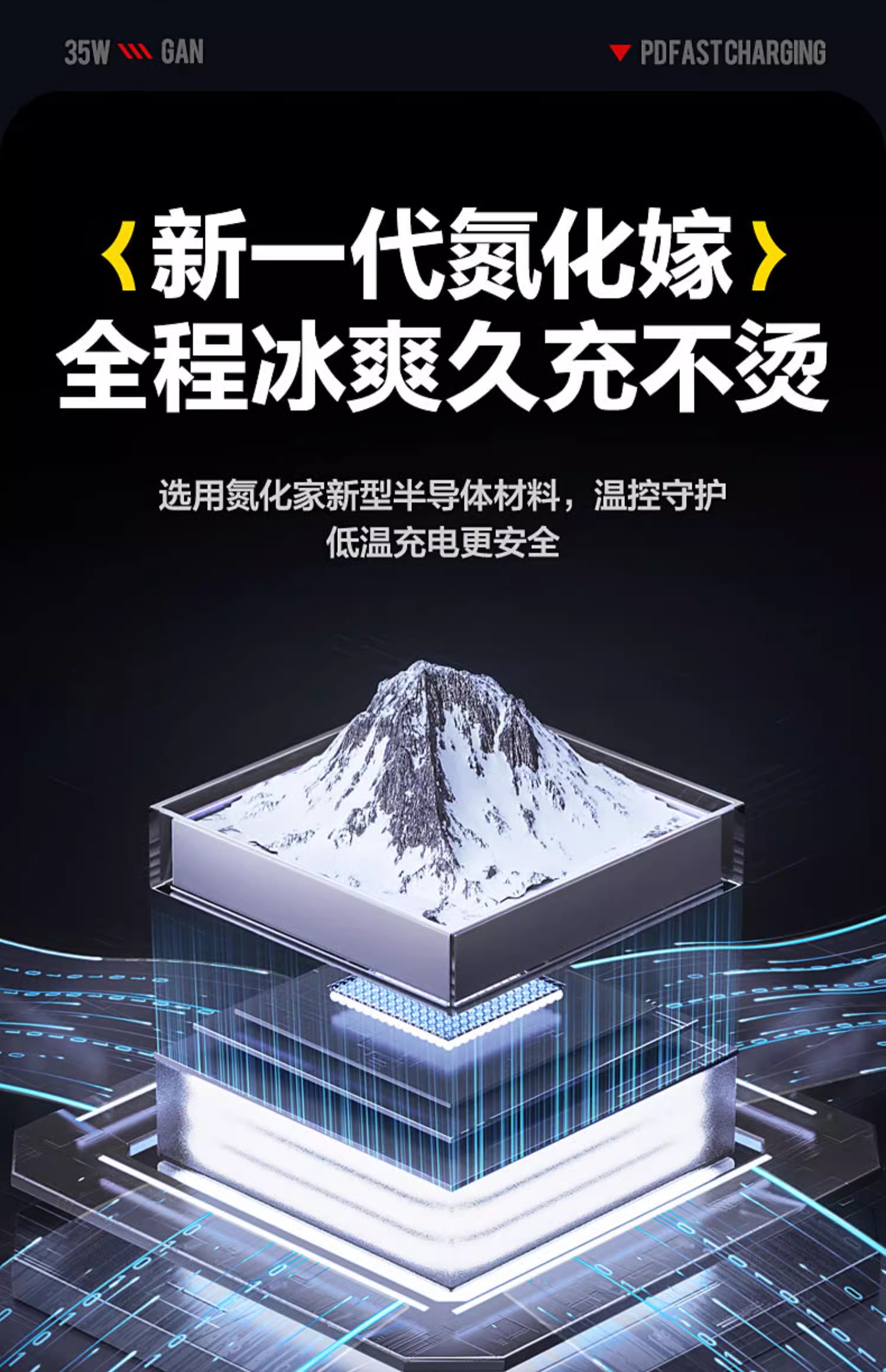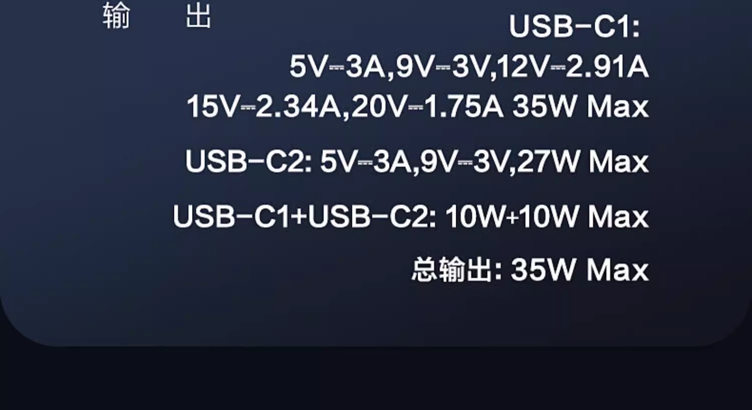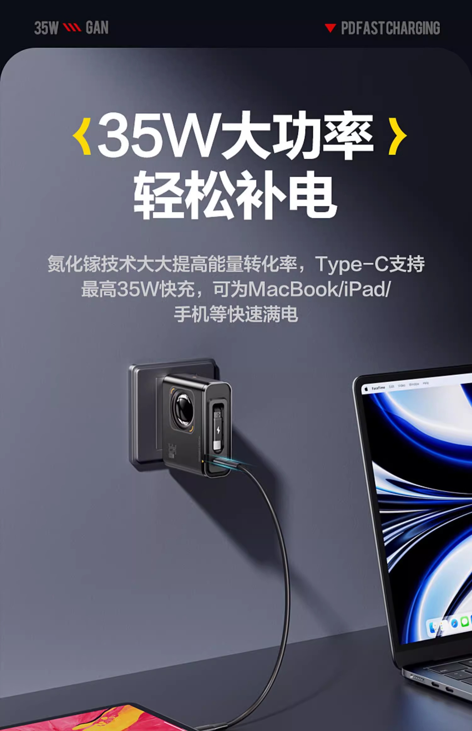 黑色【Typec伸縮線】35W雙口氮化鎵快充丨平板/手機通用