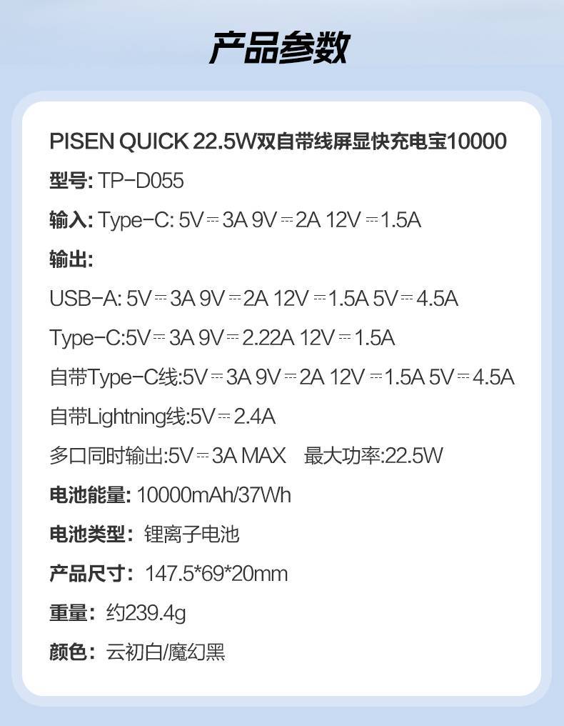 電源容量 | 10000毫安 |