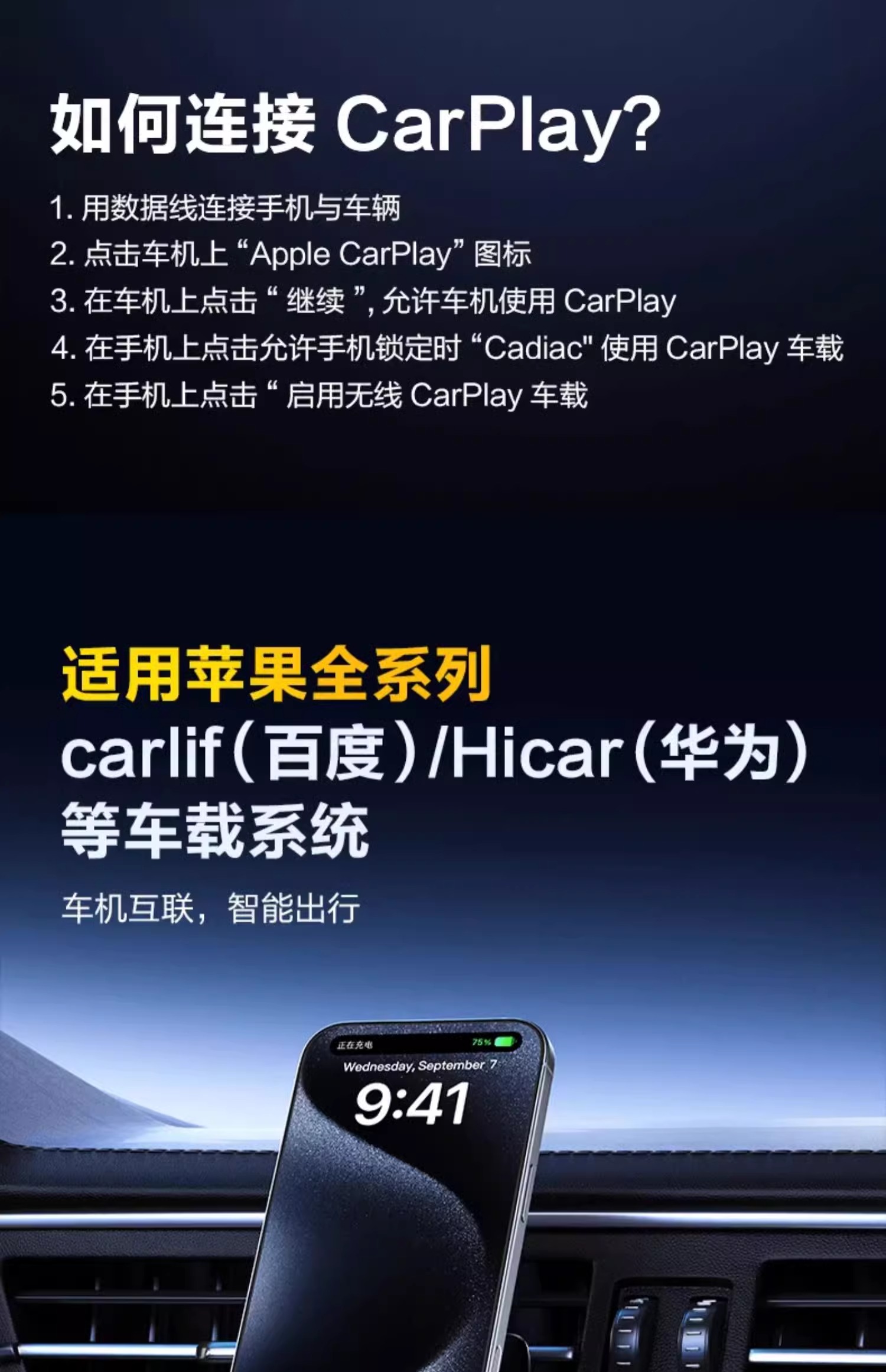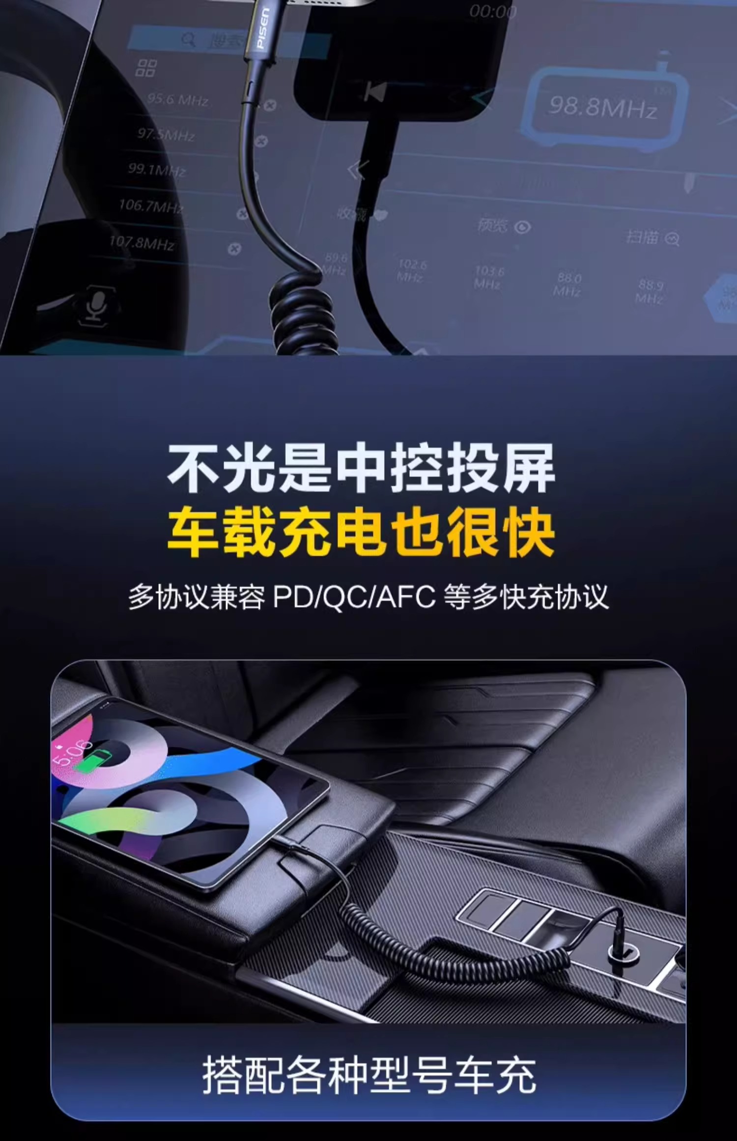 【雙Type-C接口】60W快充★適用蘋果15/16/華爲/安卓★車載CarPlay/CarL