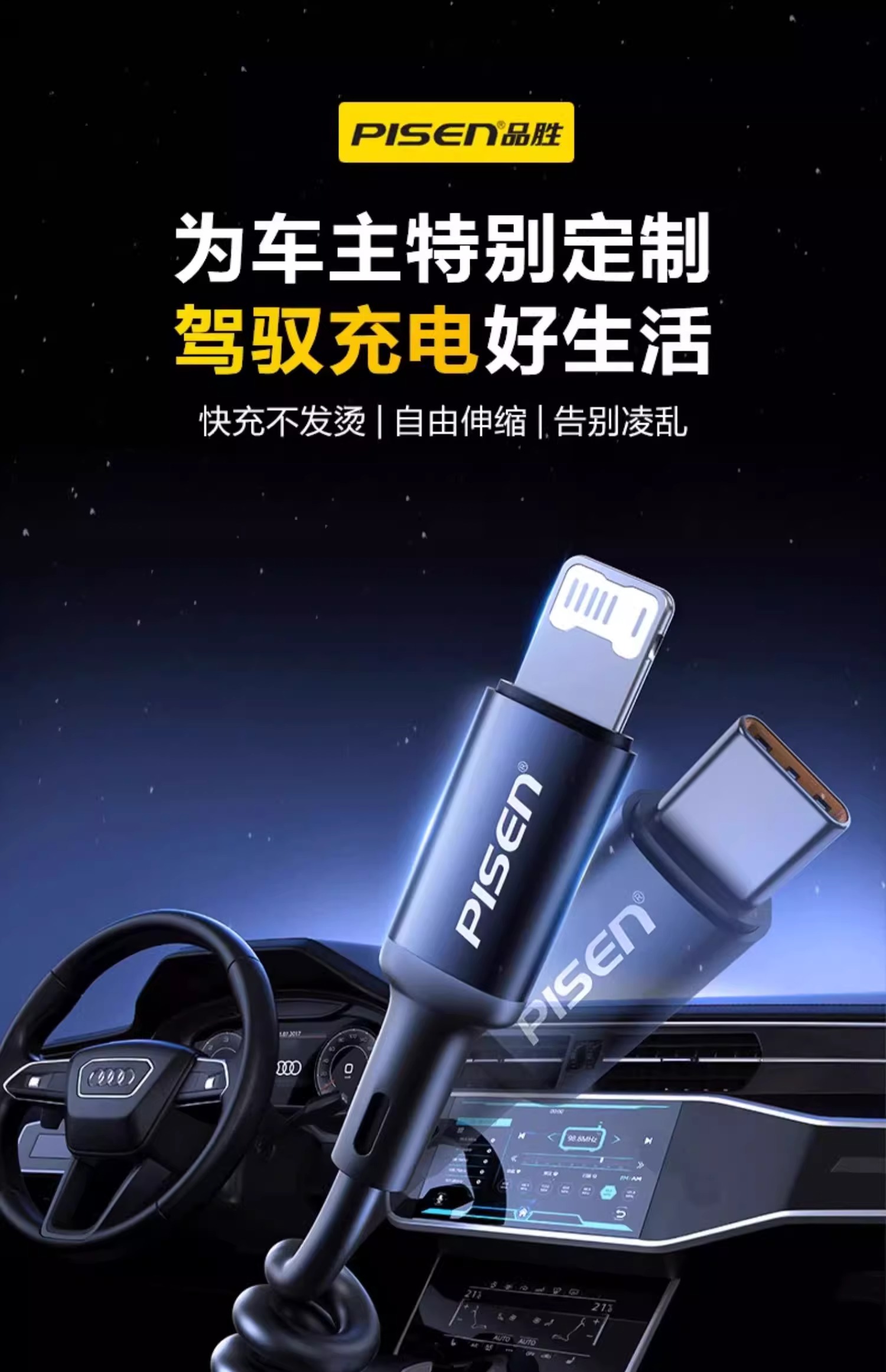 品勝車用數據線carplay彈簧伸縮適用蘋果14手機PD27W快充iPhone16