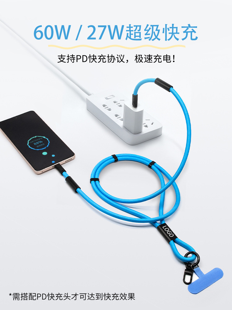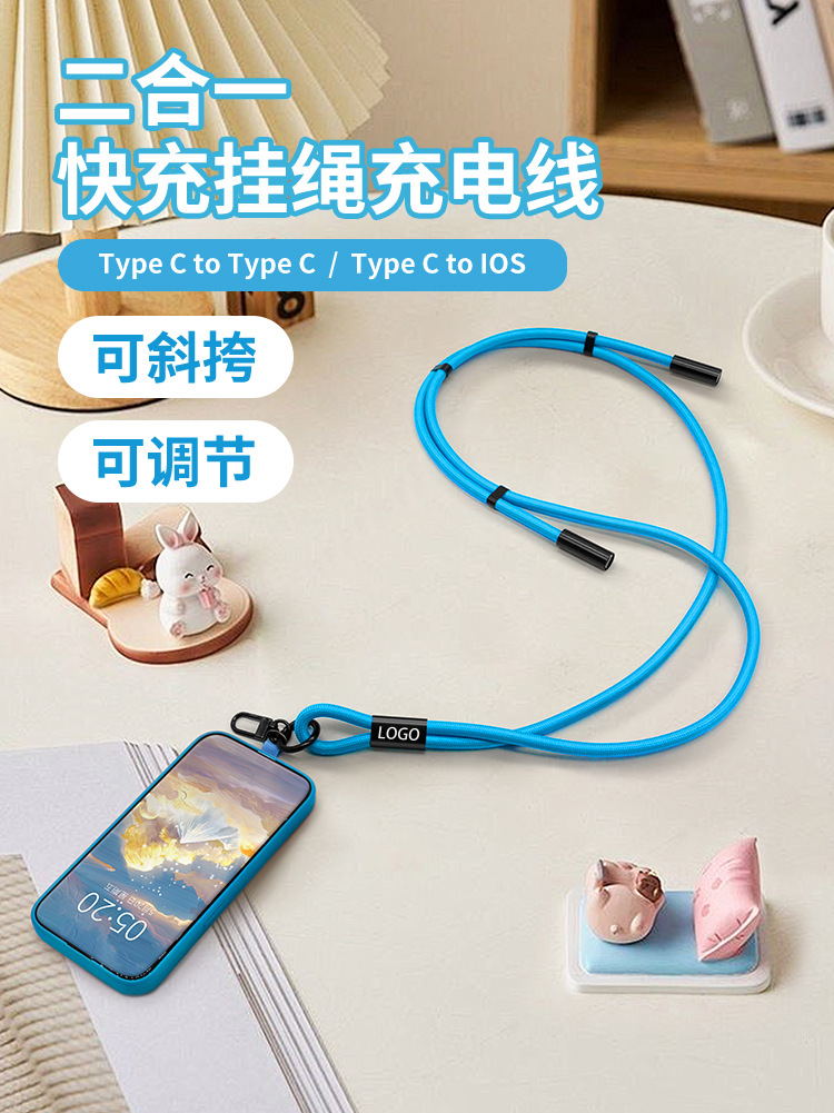 創意可攜式掛繩數據線二合一手機多功能適用TypeC蘋果16/15斜背防丟