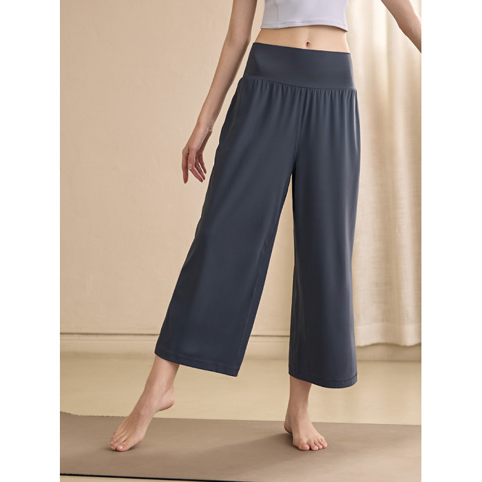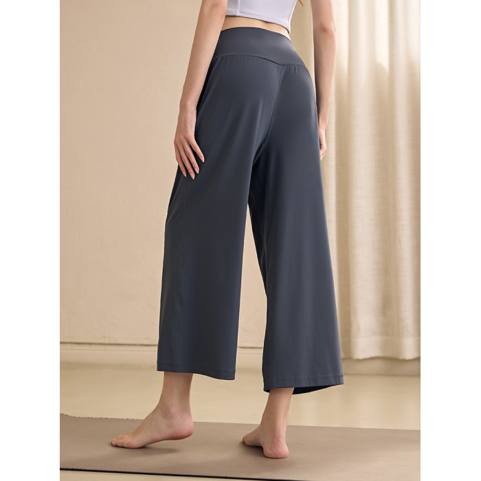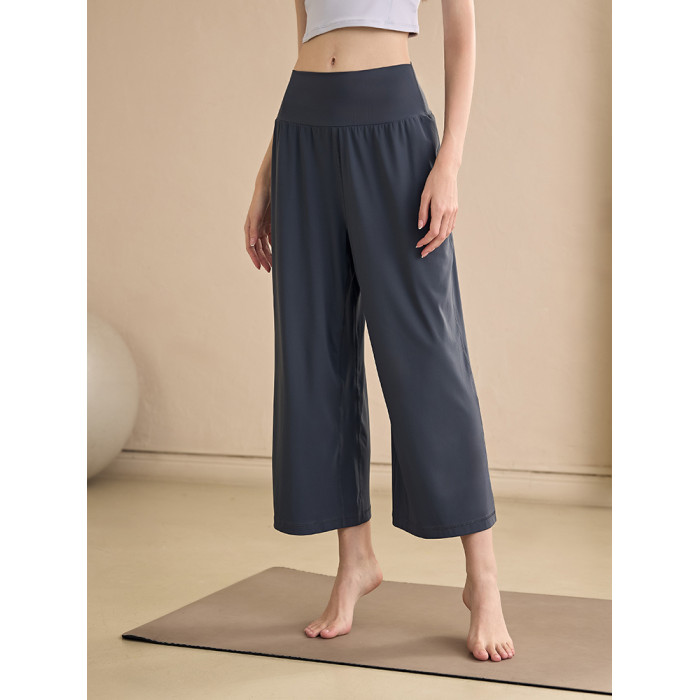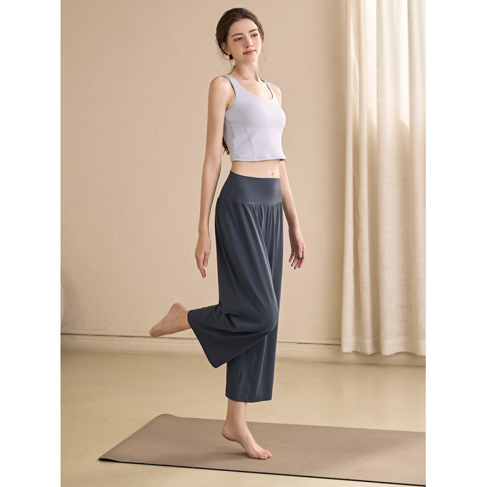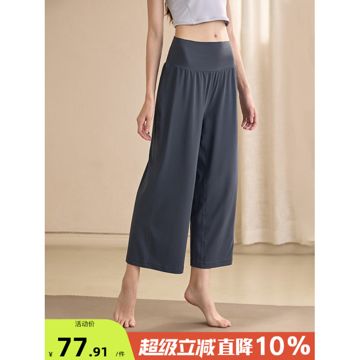 濶腿高腰瑜伽褲女七分褲寬松顯瘦垂墜感運動褲跑步直筒健身褲夏季
