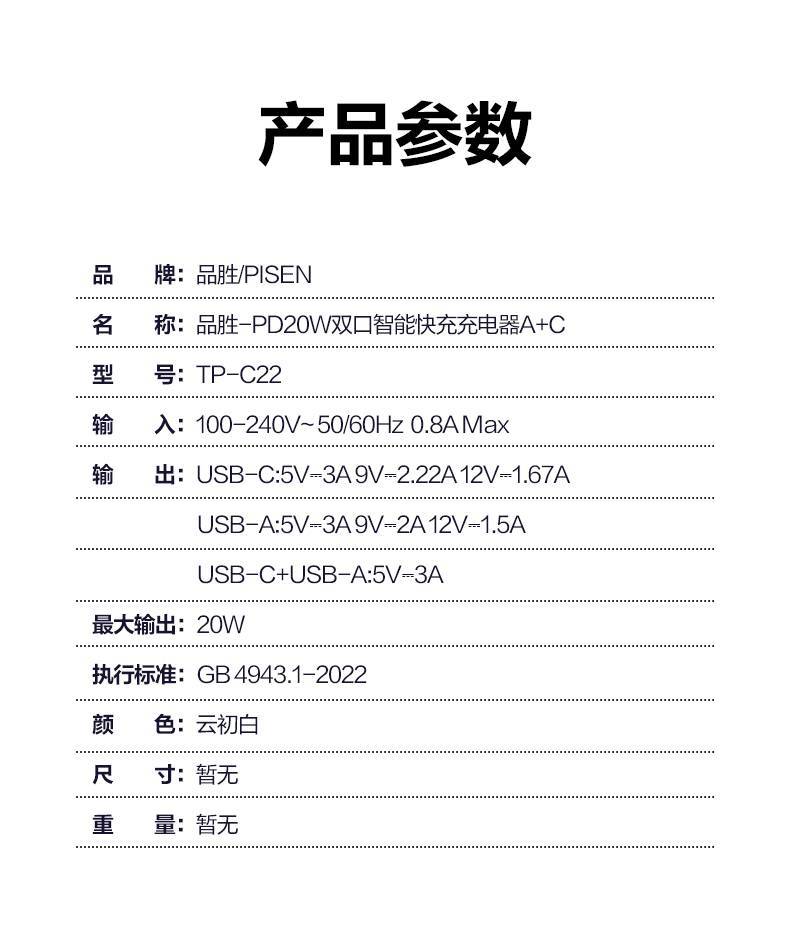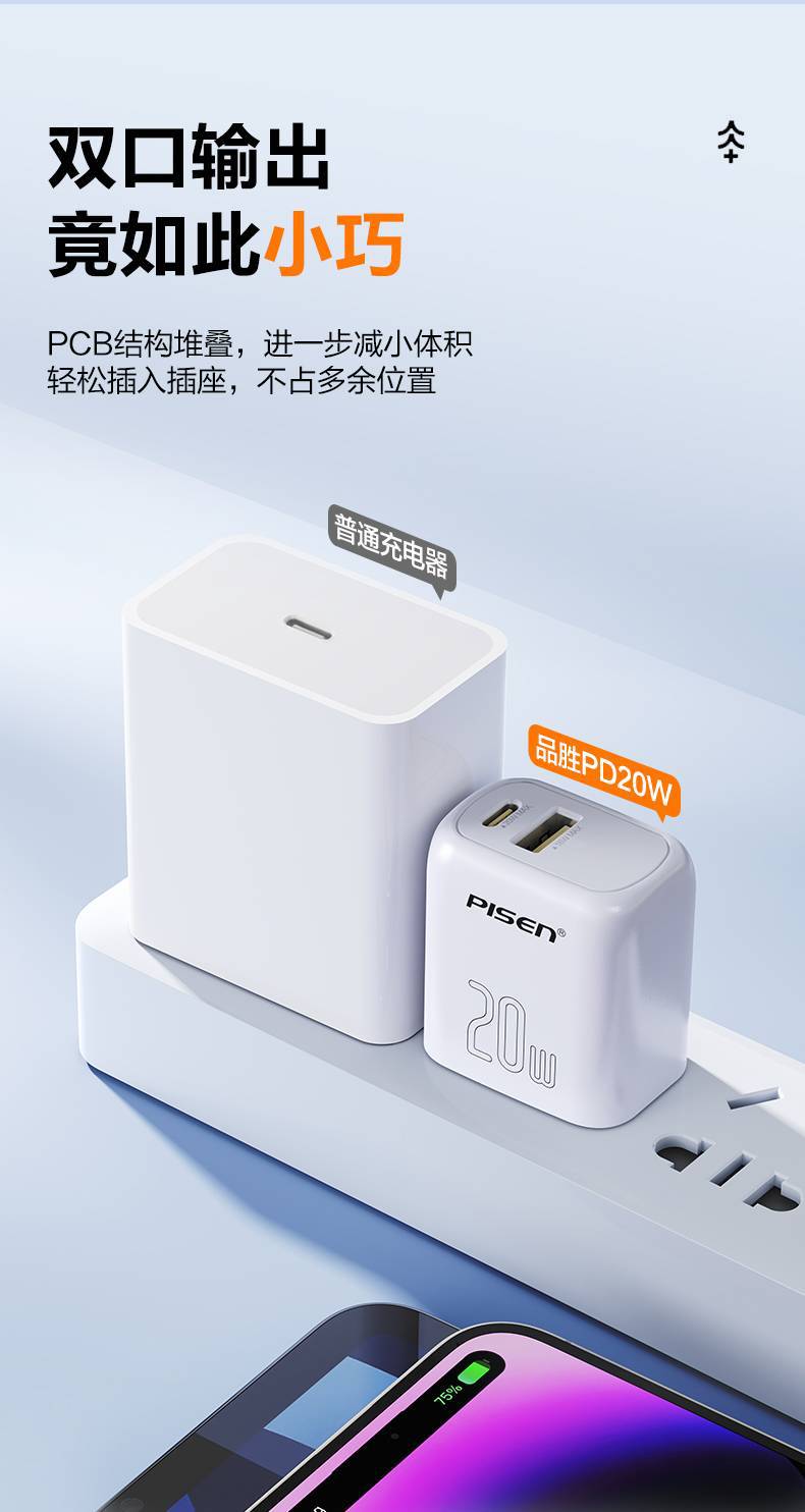 迷你款【20W雙口*Typec+Usb】直插款