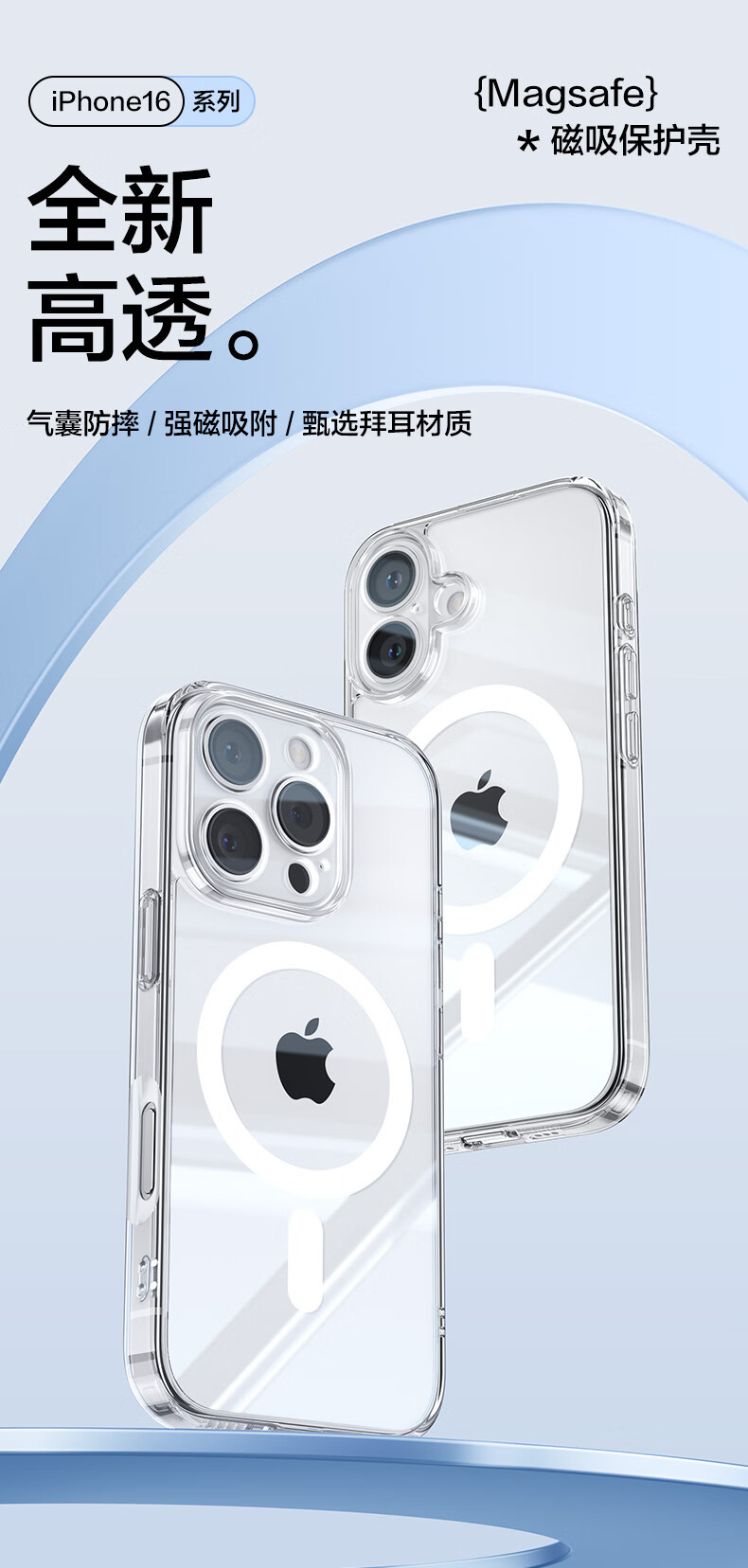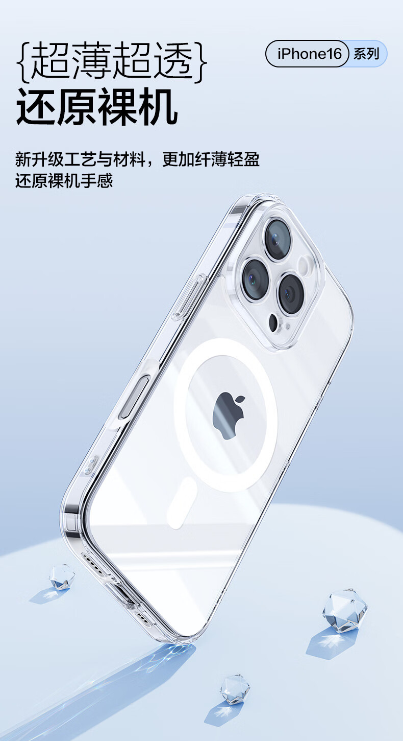 品勝適用蘋果iPhone16/15/14/13 pro max透明磁吸超薄防摔手機殼
