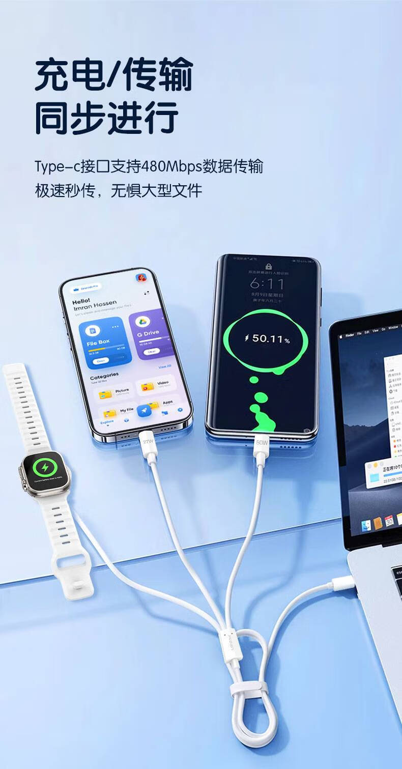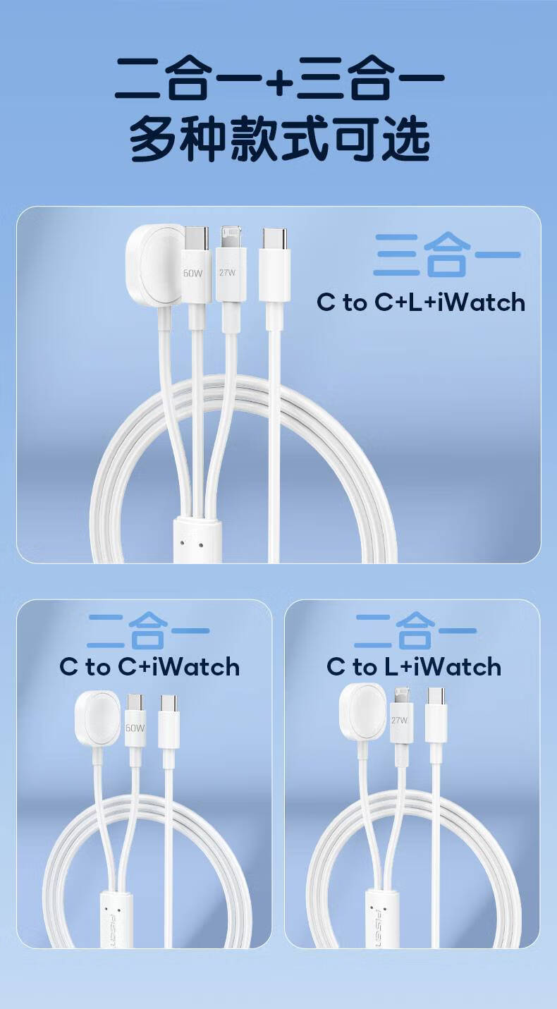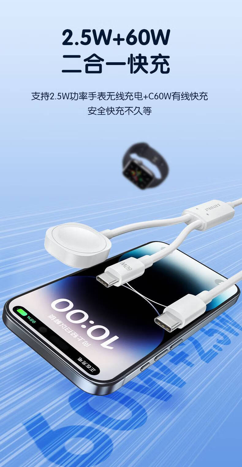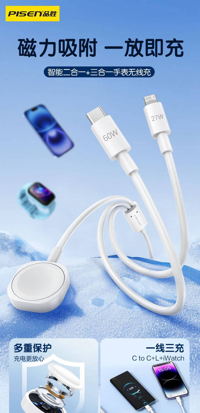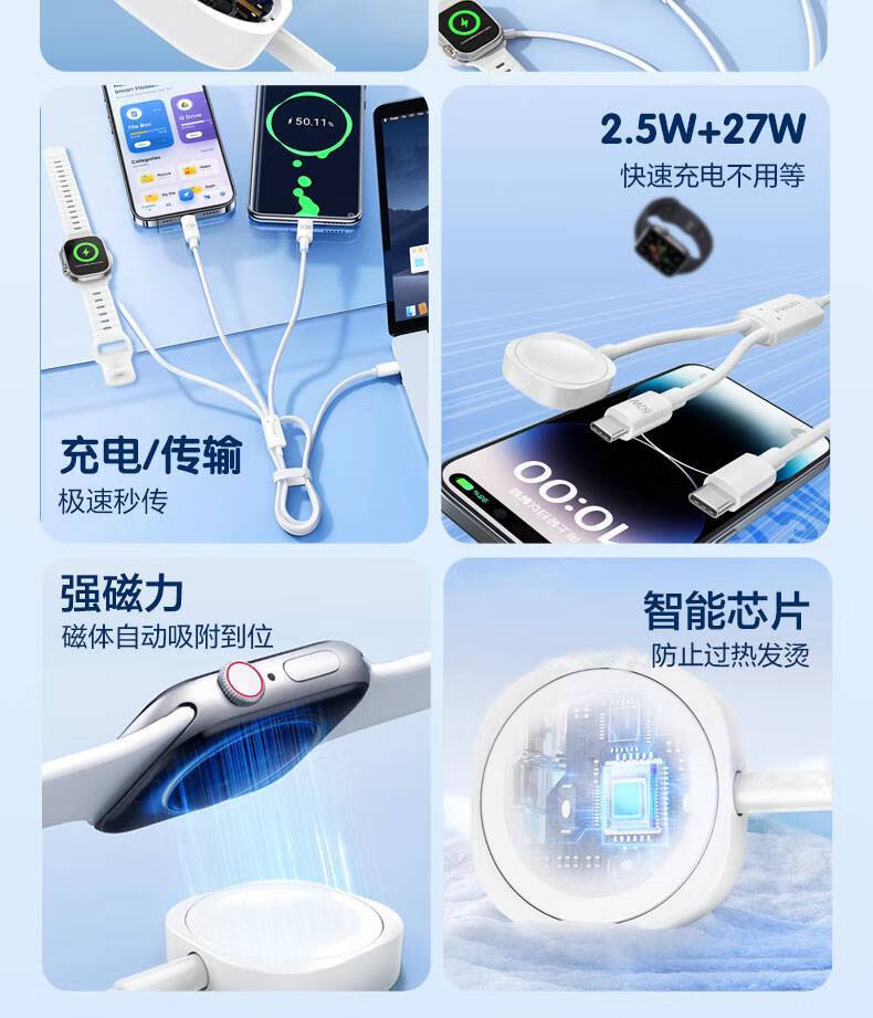 品勝智能二合一手錶無線磁吸充電器C to C+iWatch適用S10/9/8/7/6