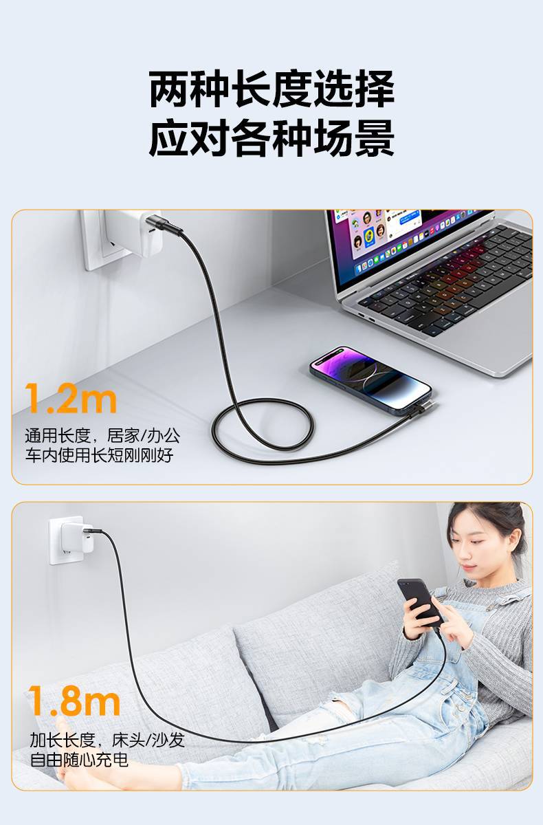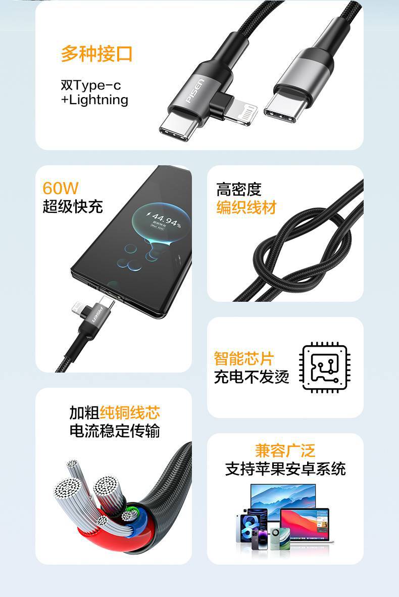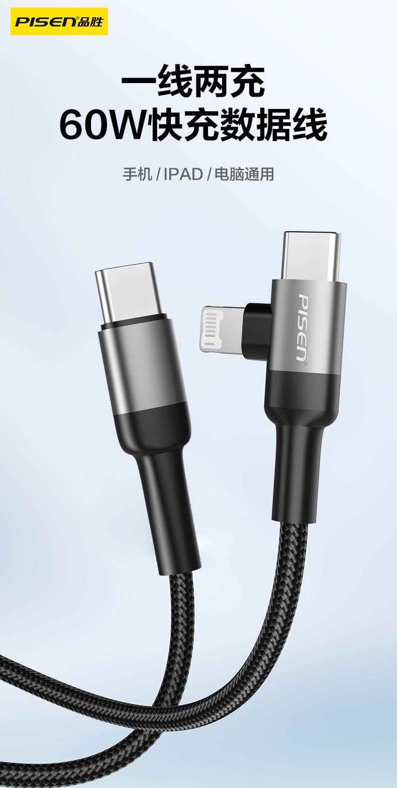 品勝 pd數據線適用蘋果iphone14快充鋁合金13快充線27w彎頭線60W