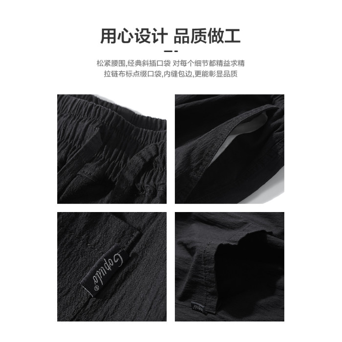 LAZY DAY原創男裝日系純色棉亞麻褲男夏季寬松休閒薄款七分燈籠褲