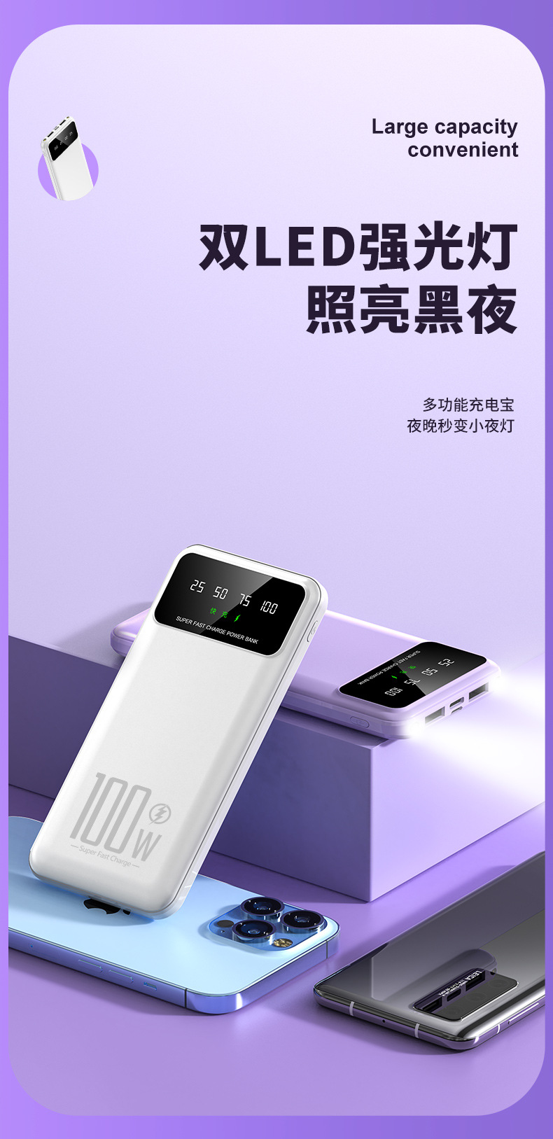 3C認証20000安培100W超級快充充電寶超薄TiK行動電源CEKC