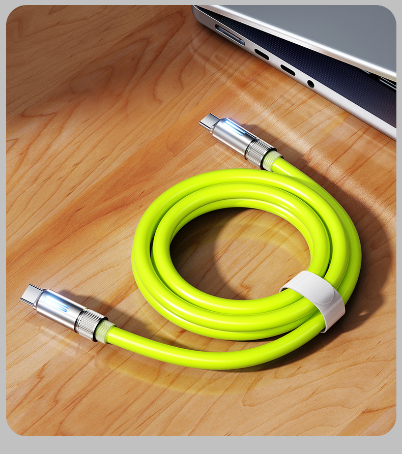 100W真矽膠快充線【檸檬黃】A-C接口