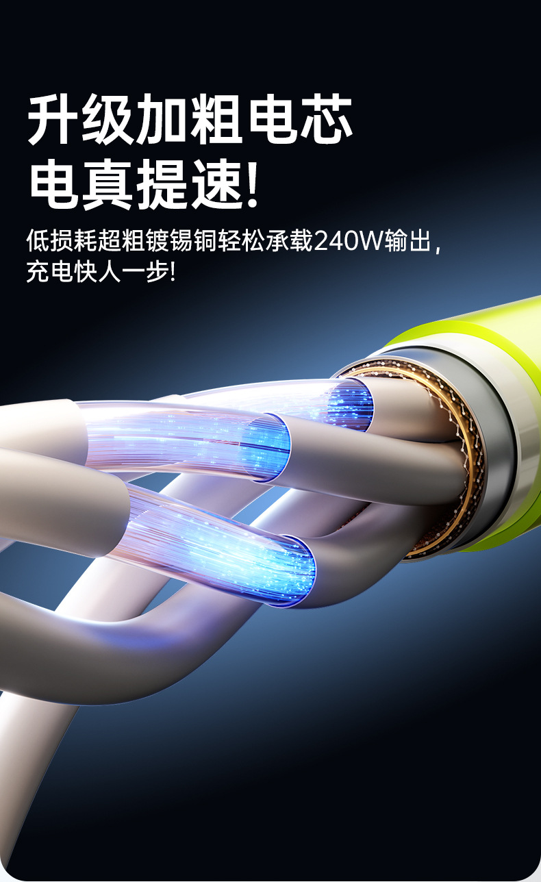 240W真矽膠快充線【檸檬黃】C-C接口