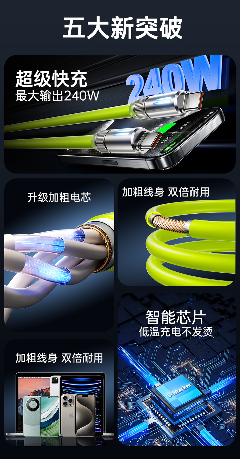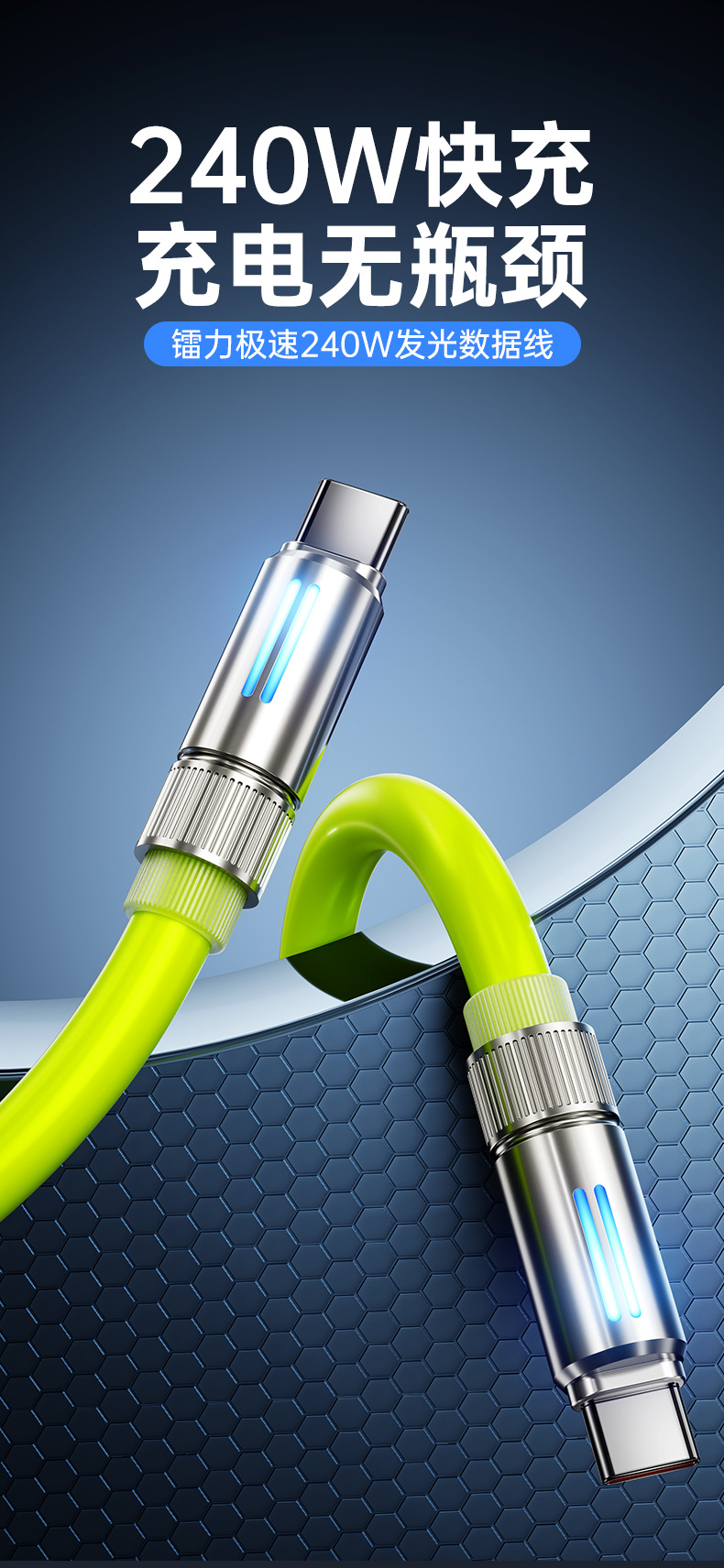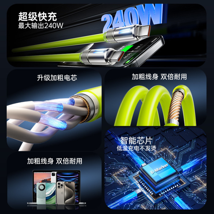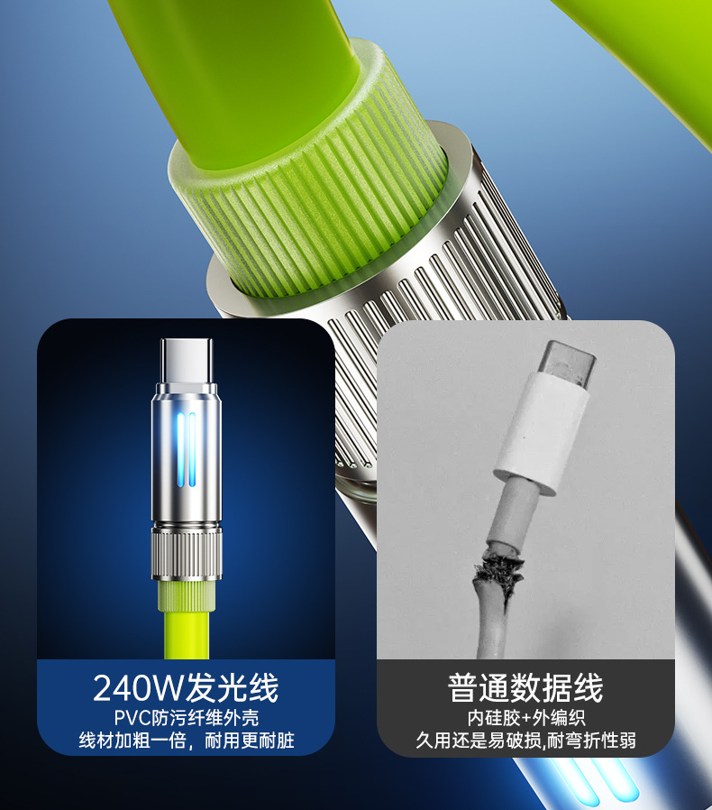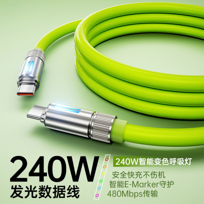 240W真矽膠快充線【青綠色】C-C接口