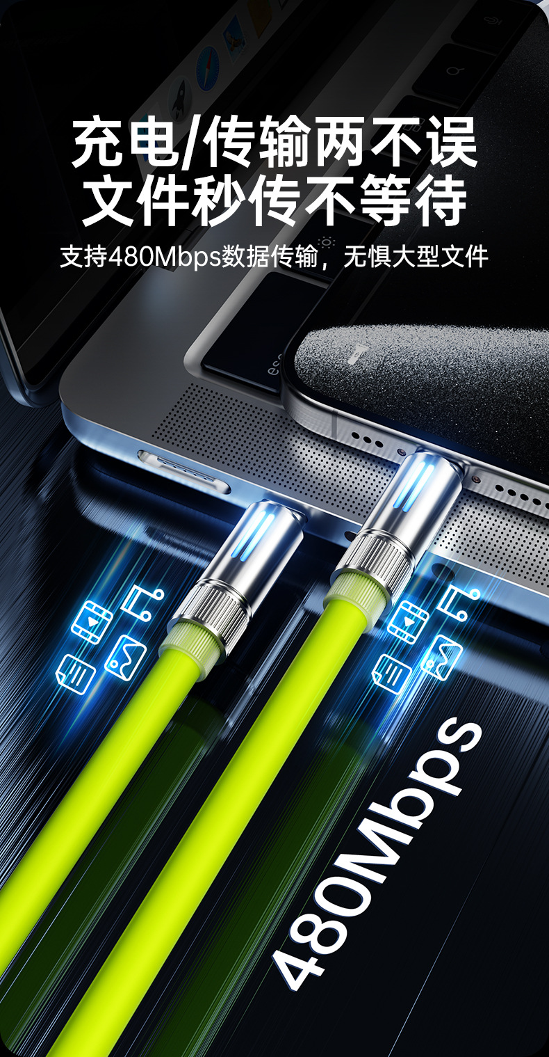 真矽膠機客數據線type-c手機充電線適用華爲蘋果6A快充發光極客線