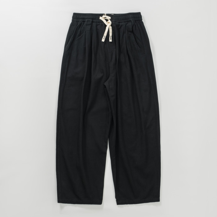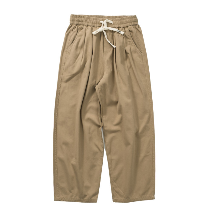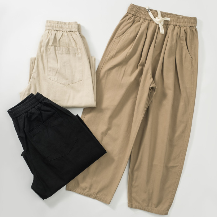春夏薄款純棉褲子簡約日系復古濶腿褲ins直筒寬松九分褲休閒褲男