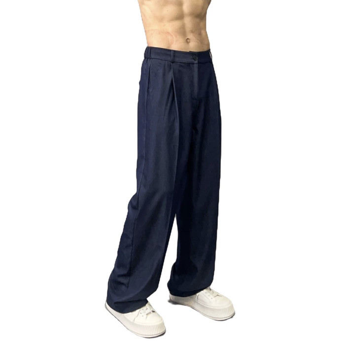 JK夏季新品牛仔褲男中腰垂感薄款寬松顯瘦冰絲直筒拖地濶腿褲子男