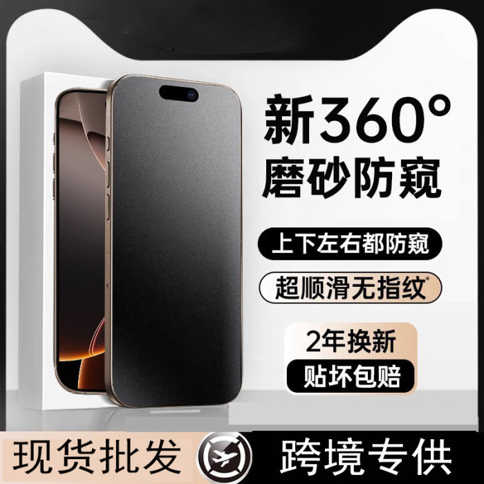 360度磨砂防窺無塵倉適用蘋果15Promax鋼化膜iPhone14Pro手機16