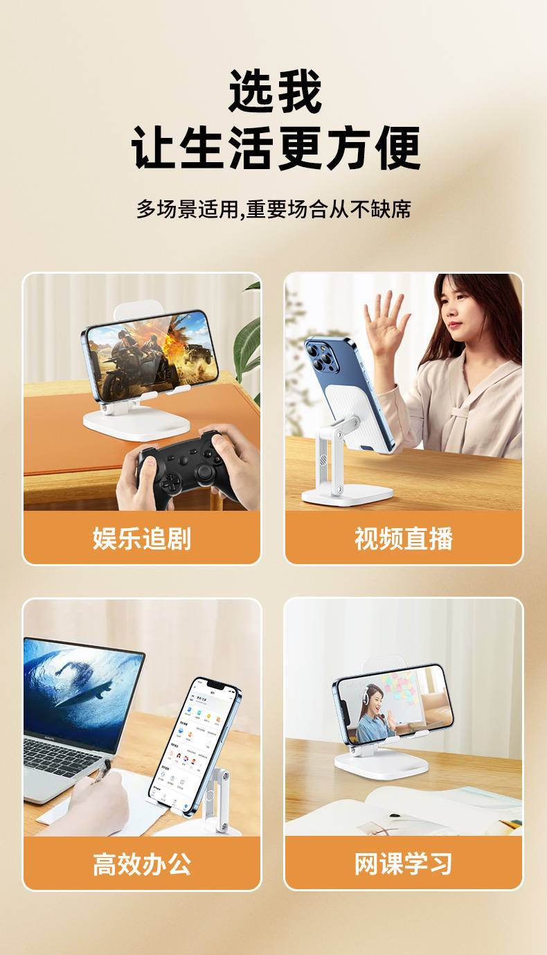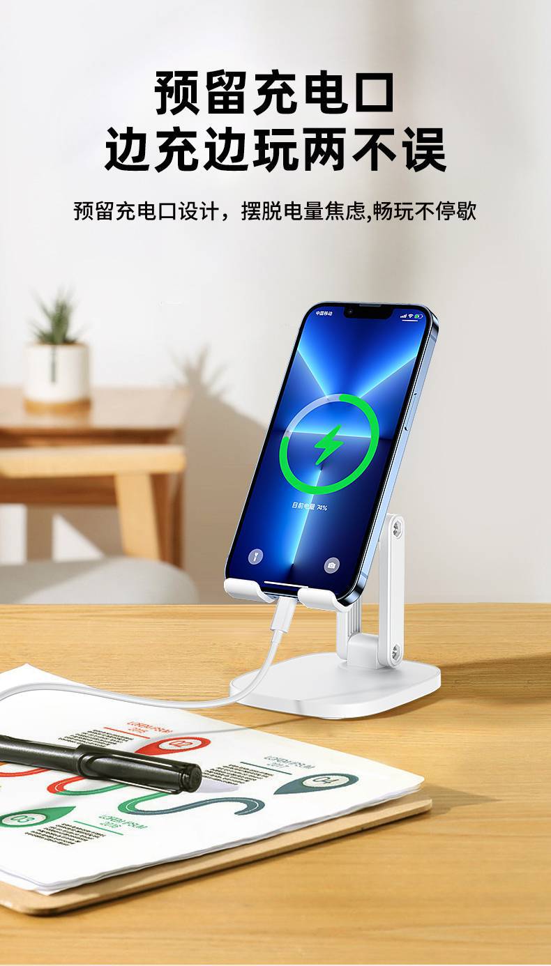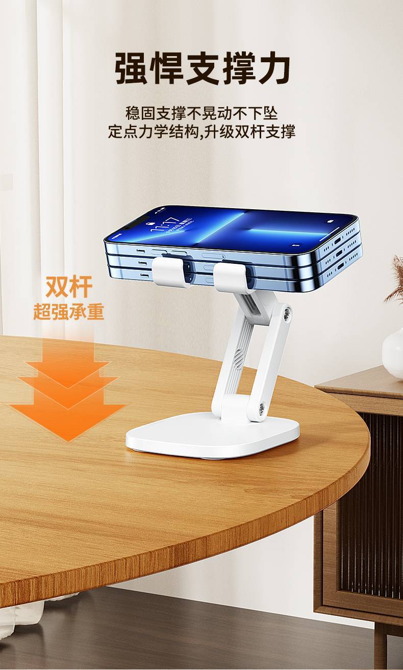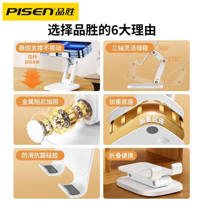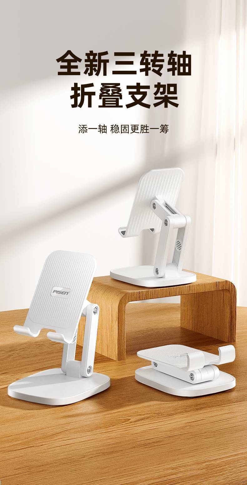 品勝鋁合金雙軸折曡可攜式手機支架懶人防滑抗震矽膠材質手機支架