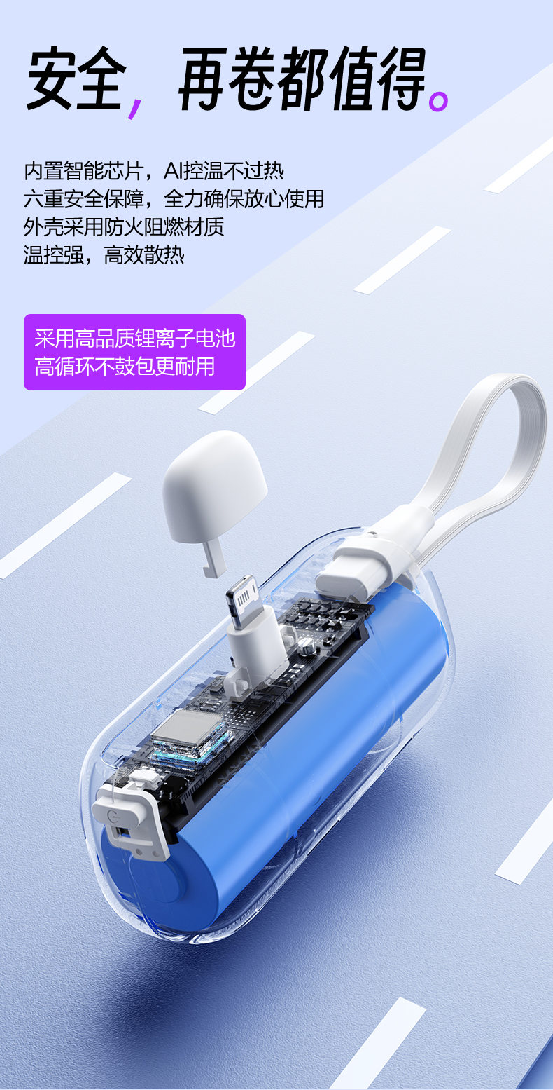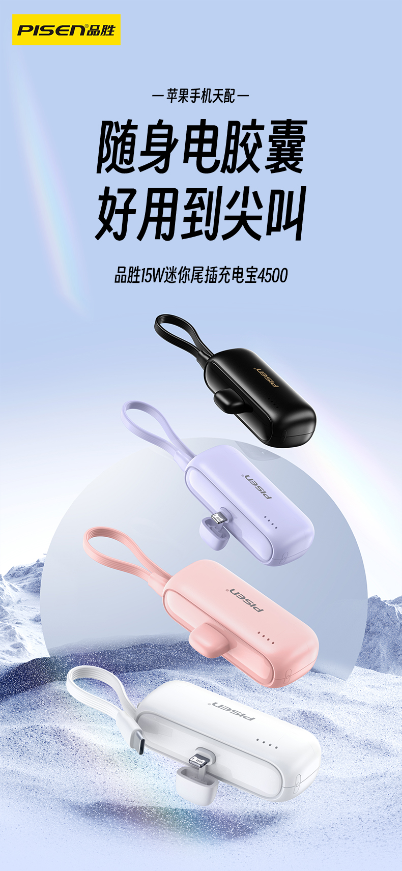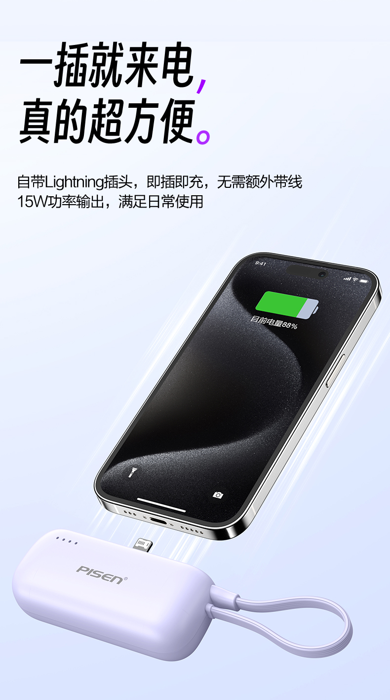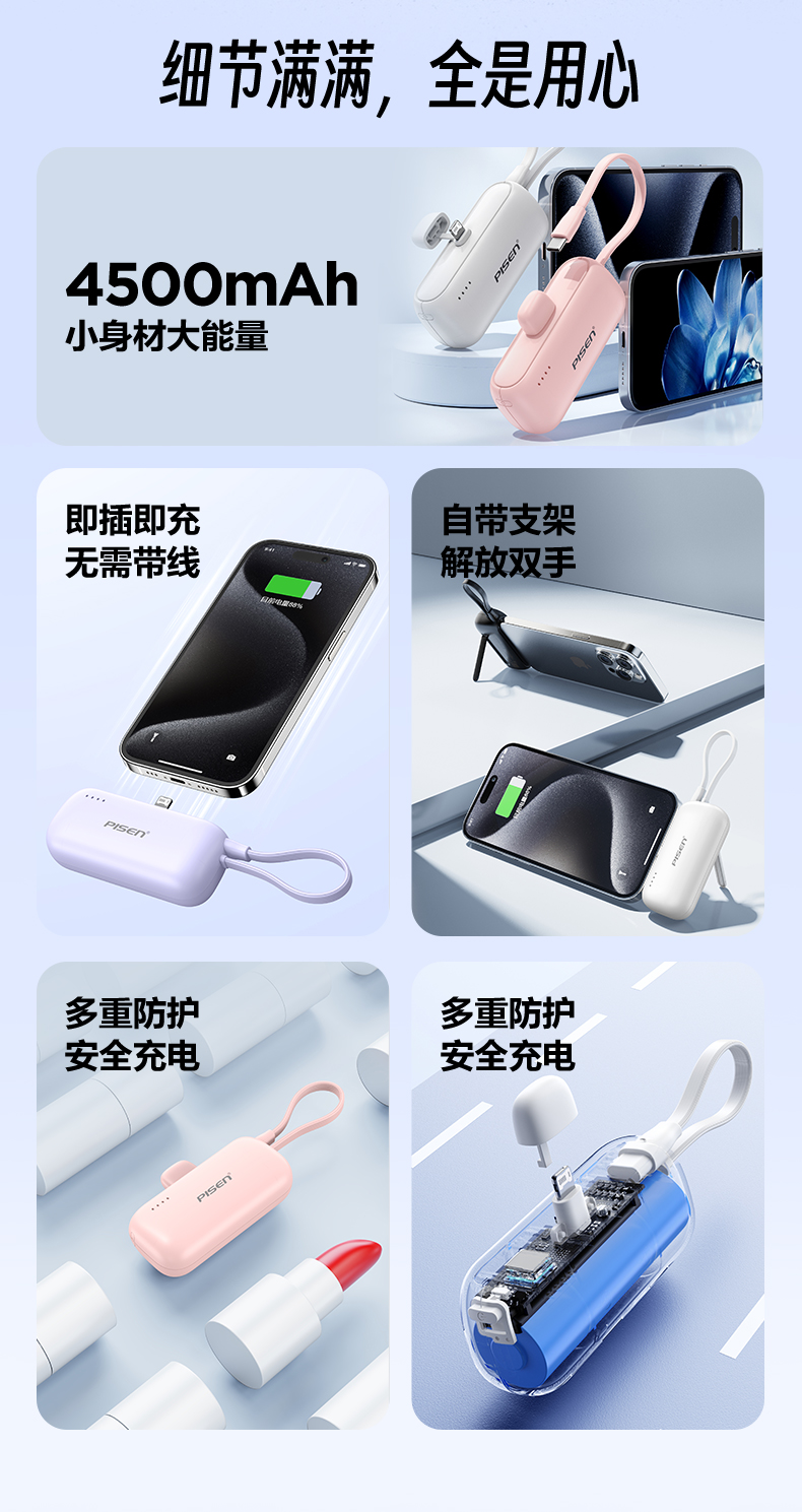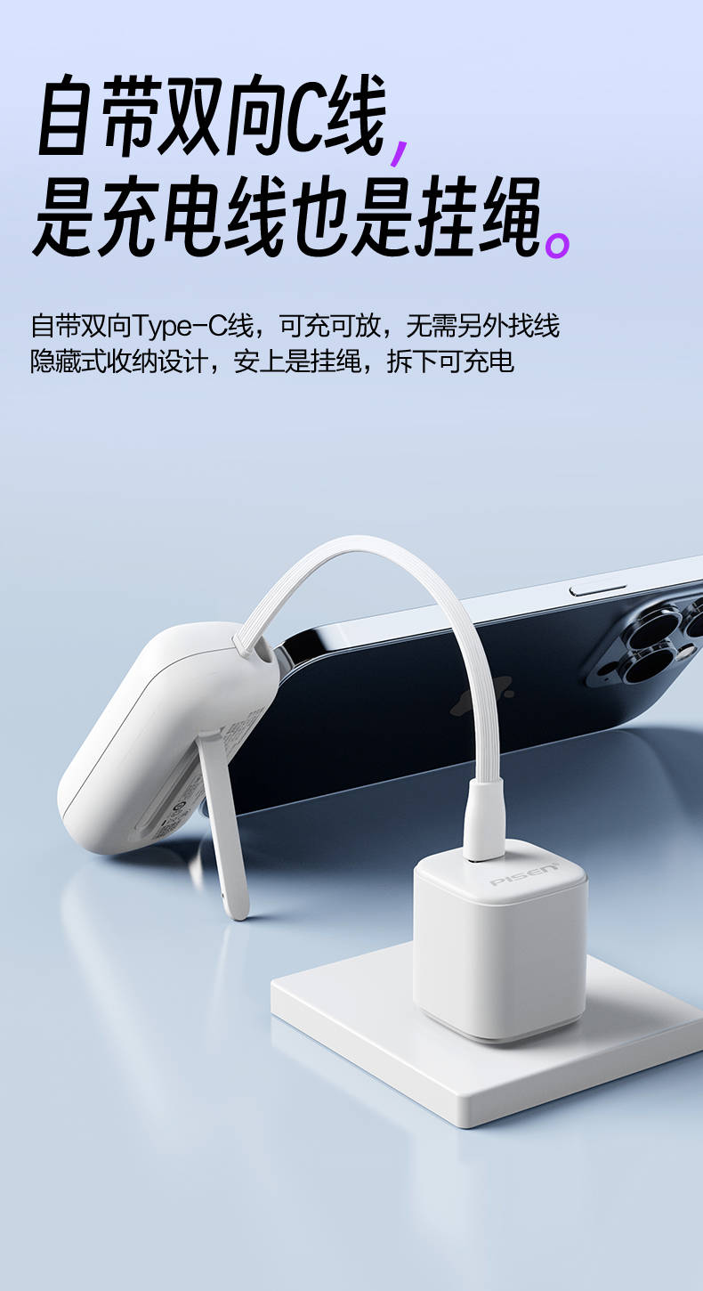 品勝膠囊充電寶2025新款自帶支架小巧快充適用iPhone16華爲蘋果15
