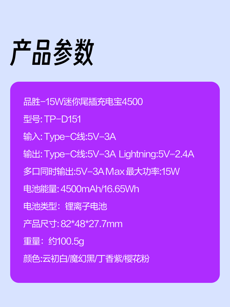電源容量 4500毫安
