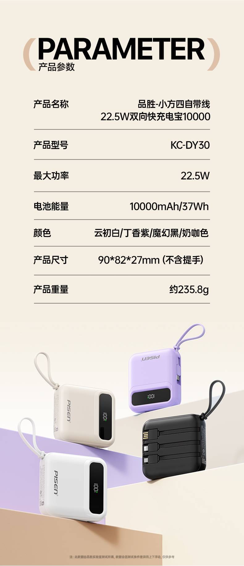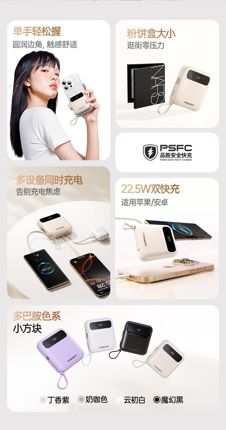 顔色 | 【魔幻黑】小方四自帶線22.5W*帶提手 |