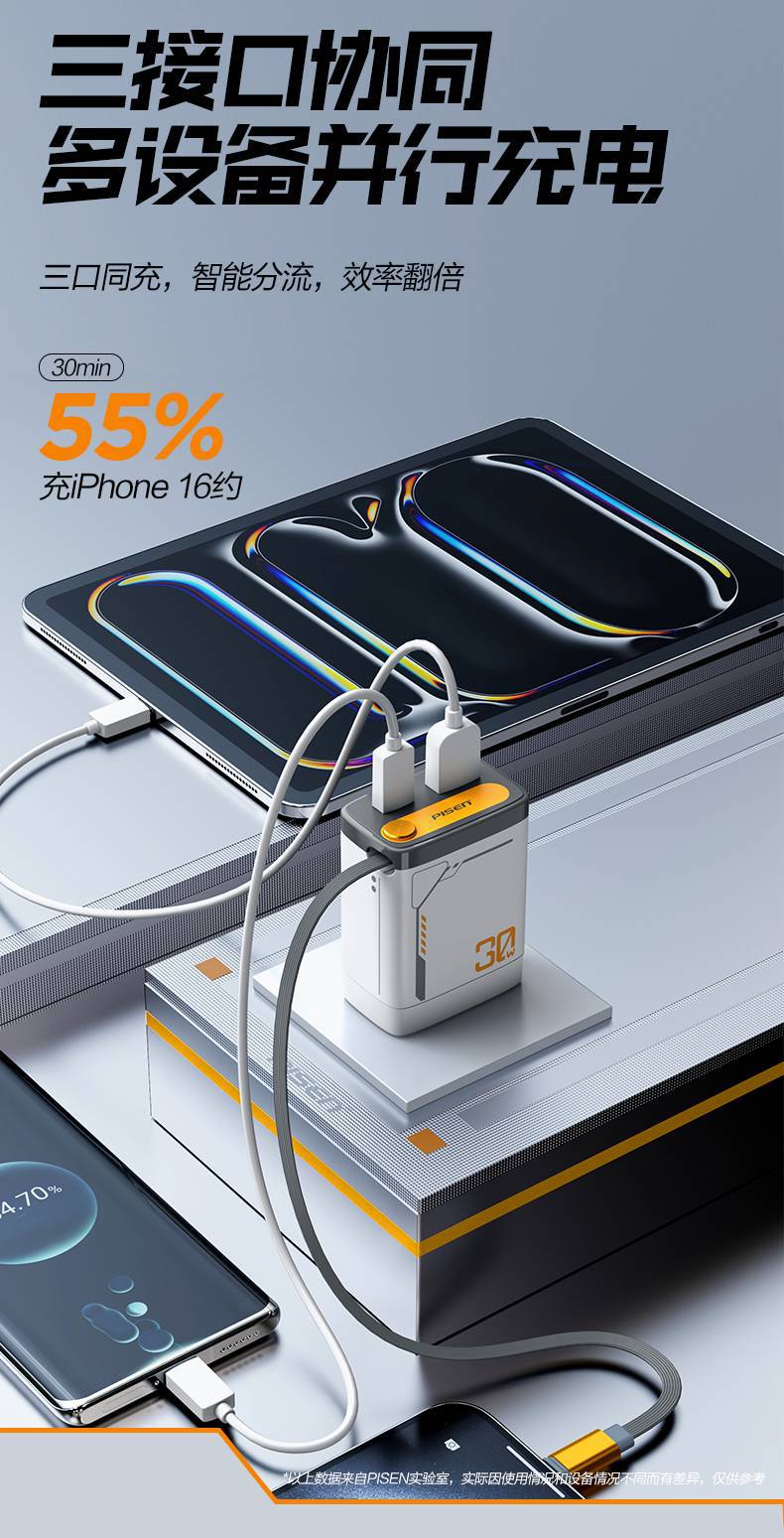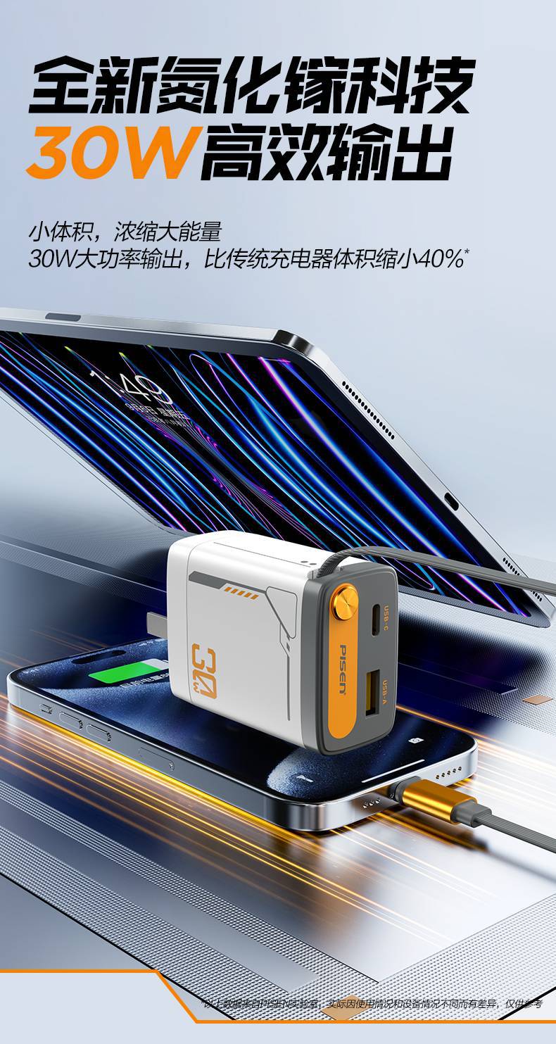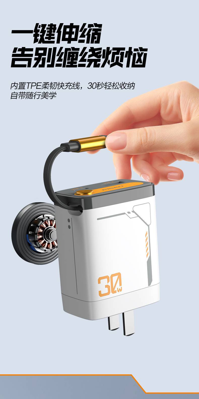 適用型號 | 30W氮化鎵★自帶伸縮type-c線★1A+2C三口快充 |