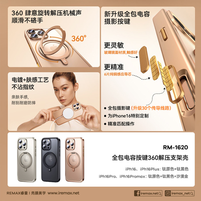 Remax適用iPhone16系列手機殼360°磁吸環支架殼蘋果16全包保護殼