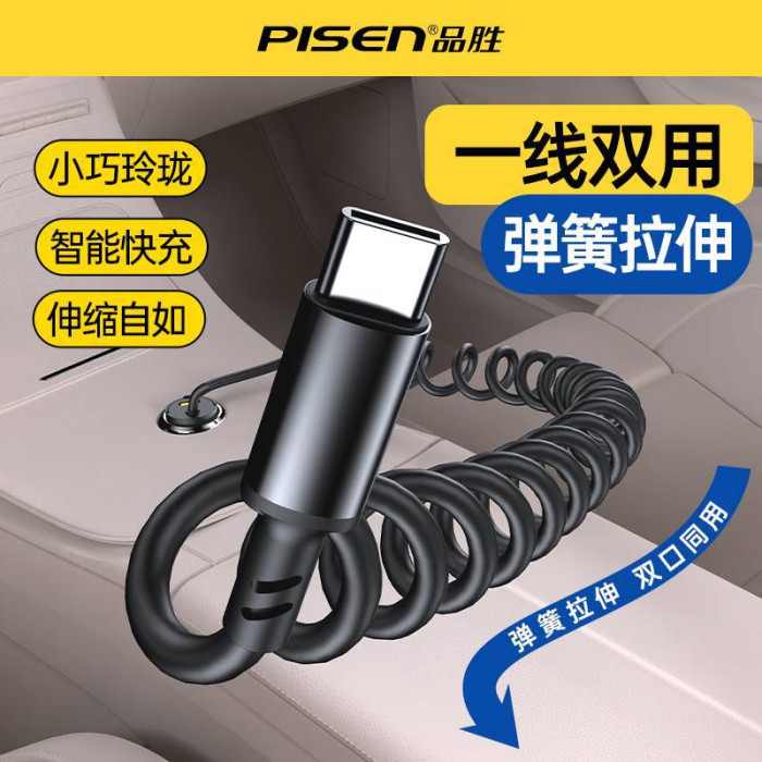 品勝type-c車用充電器30W快充彈簧自帶線汽車點菸器轉換插頭車充