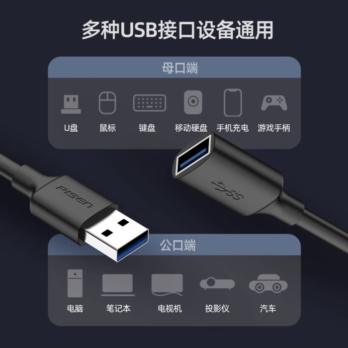 品勝 usb3.0延長線公對母電腦U盤網卡滑鼠硬盤數據加長線1/2/3米