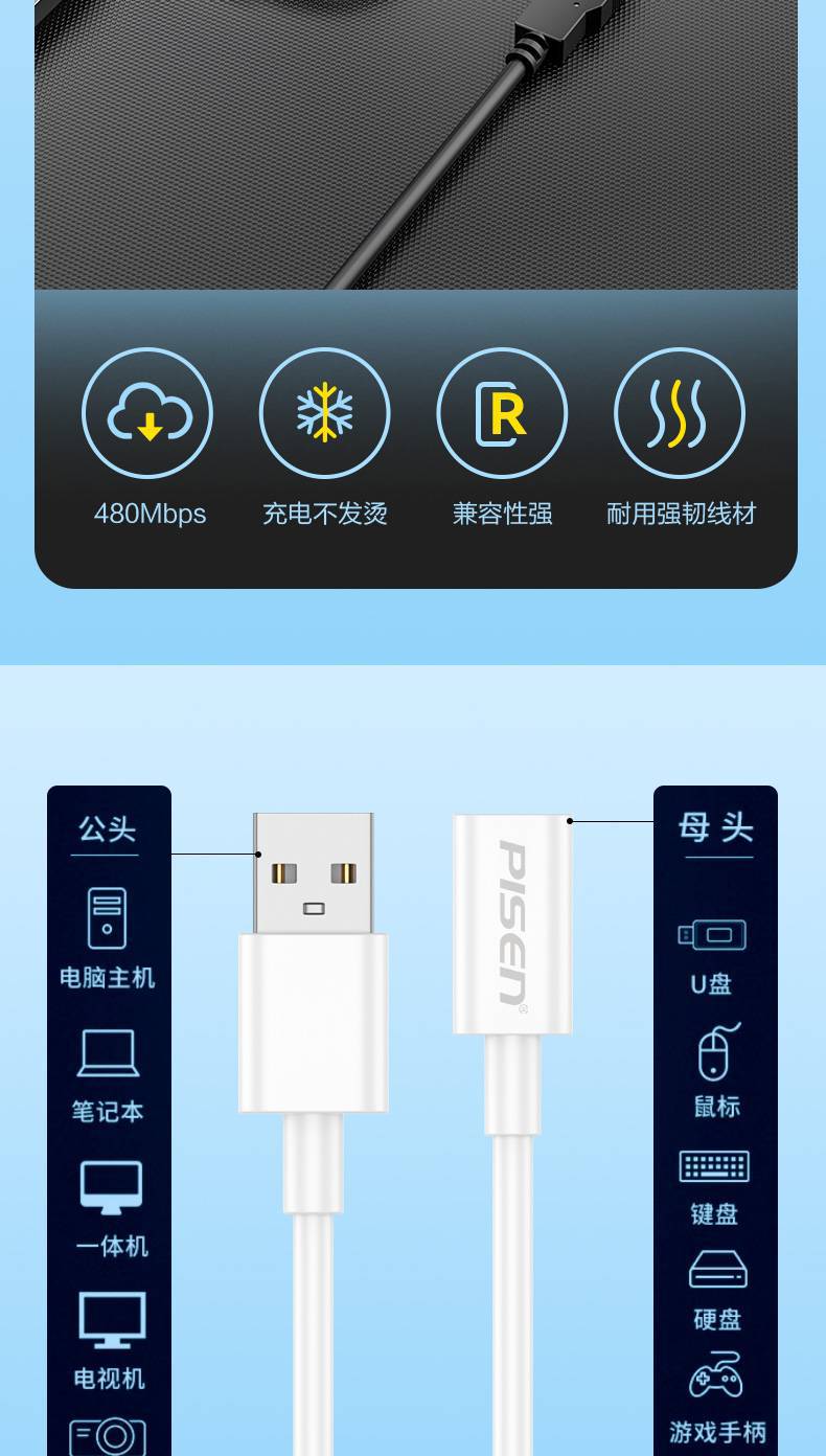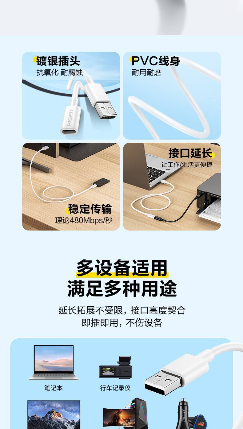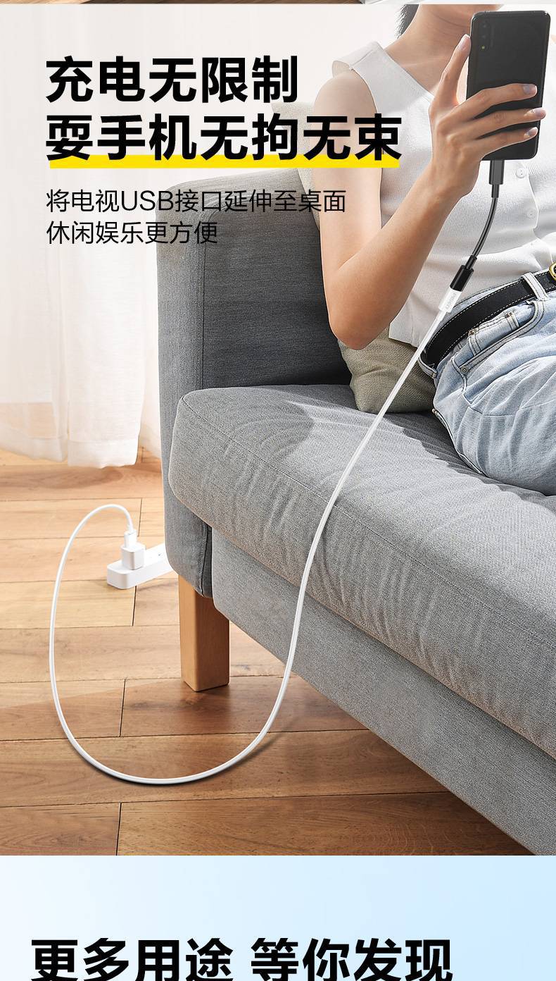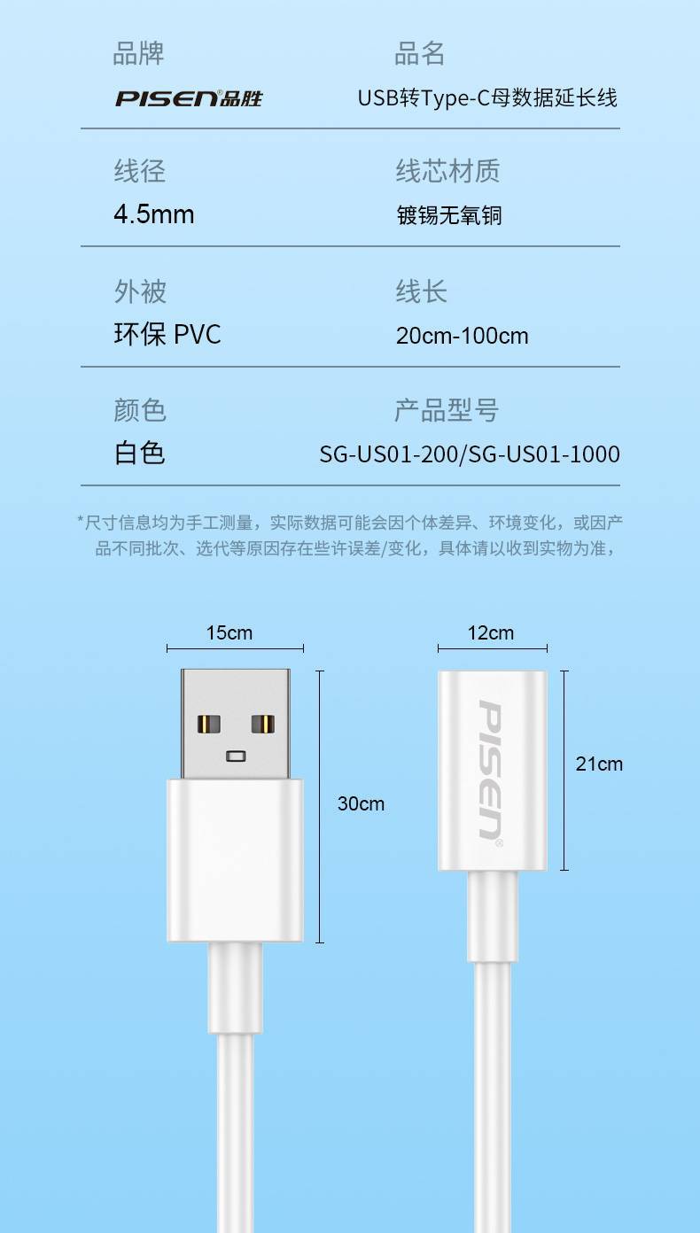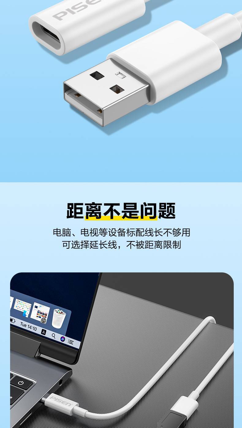品勝USB轉Type-C母數據延長線轉接頭高速傳輸適用蘋果手機充電視