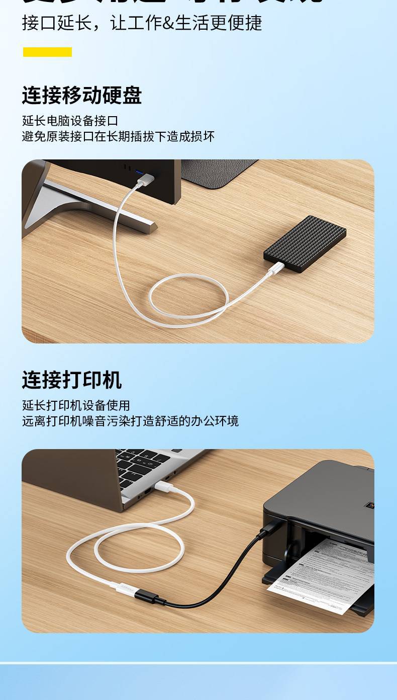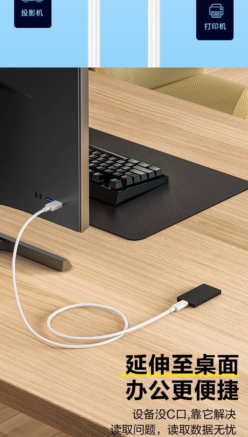 USB轉Type-C母數據延長線1m